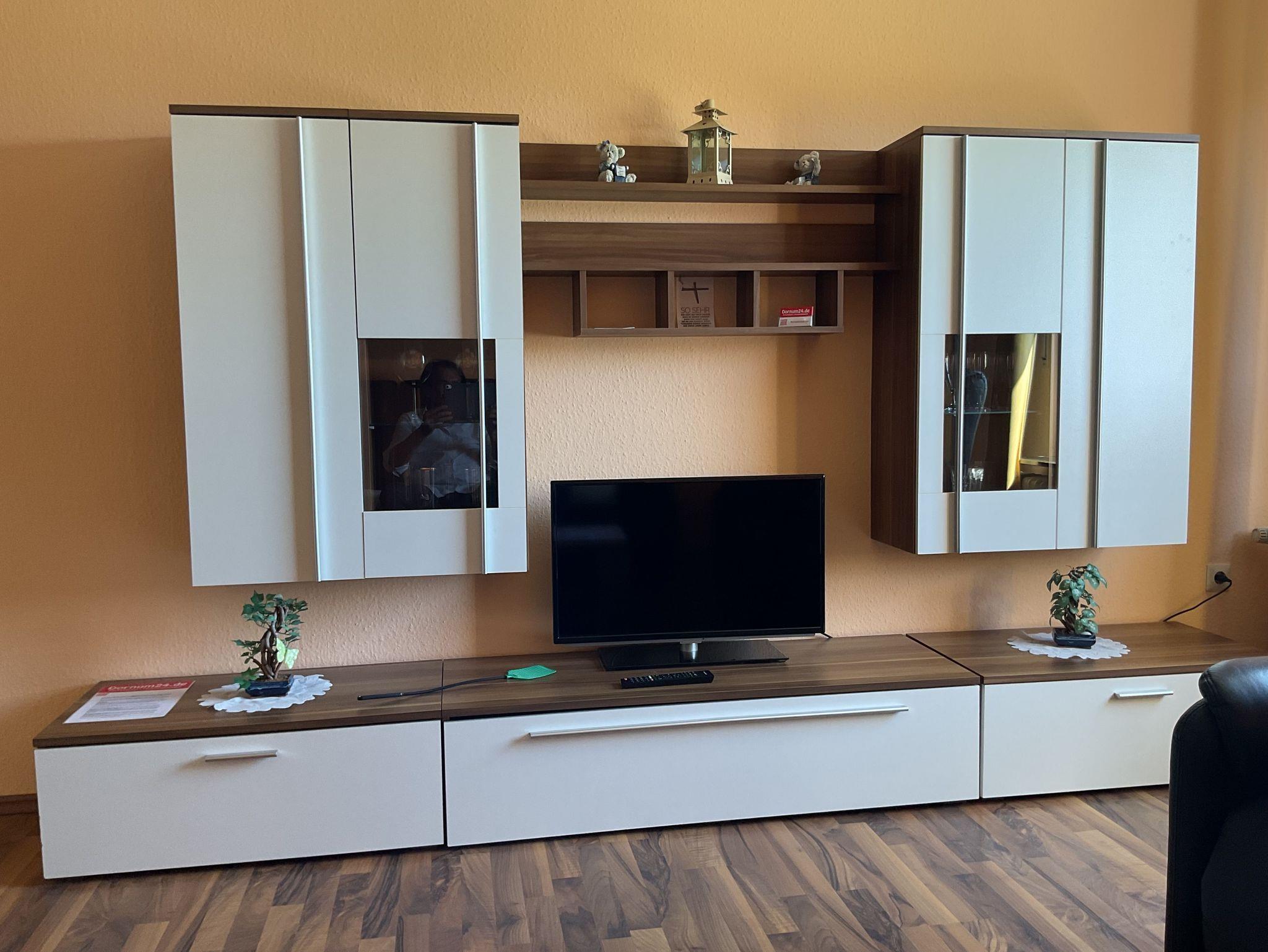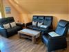 Wohnzimmer mit gemütlicher, moderner Leder-Sitzgruppe und Flachbild-TV.