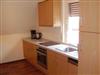 Separate Küche mit Einbauküche mit 4-Plattenherd mit Ceranfeld und Backofen, Spülmaschine, Kühlschrank und kleinem Gefrierschrank sowie den erforderlichen Elektrogeräten; Essbereich mit Bestuhlung.