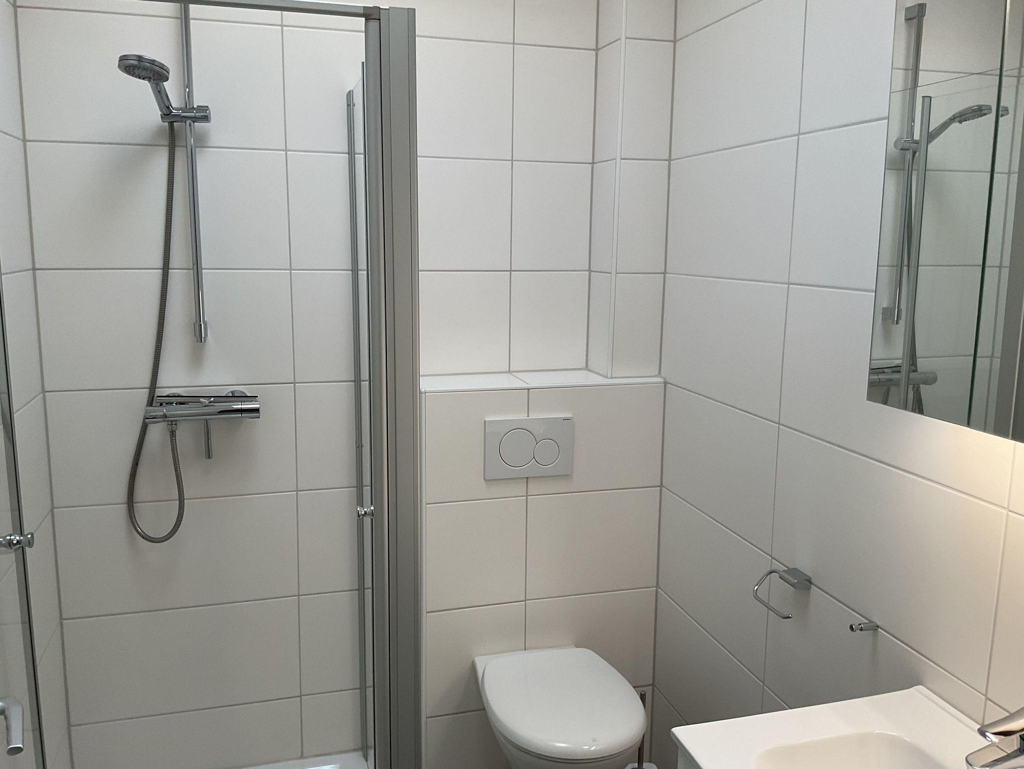Küche mit EBK mit Elektroherd mit Ceranfeld und Backofen, Kühlschrank mit Gefrierfach, Geschirrspüler, Mikrowelle, Wasserkocher, Kaffeemaschine und den sonstigen erforderlichen Elektrogeräten.
