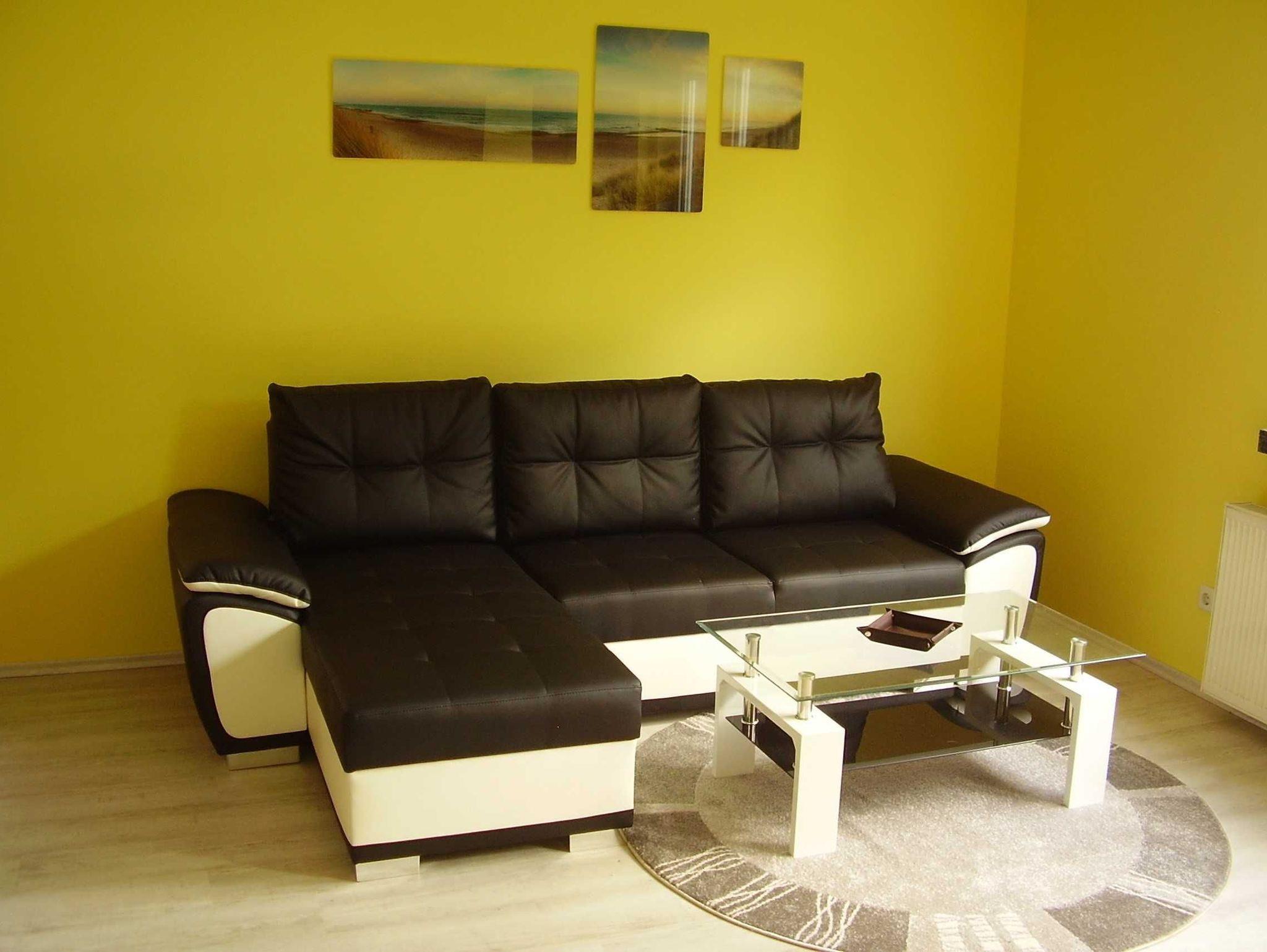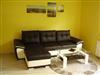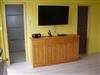Großzügiger offener Wohn-/Essbereich mit moderner, hochwertiger Kunstledersitzecke, grossem Flachbild-TV, Musikanlage mit CD-Player und DVD-Player. Grosser Esstisch mit Bestuhlung.