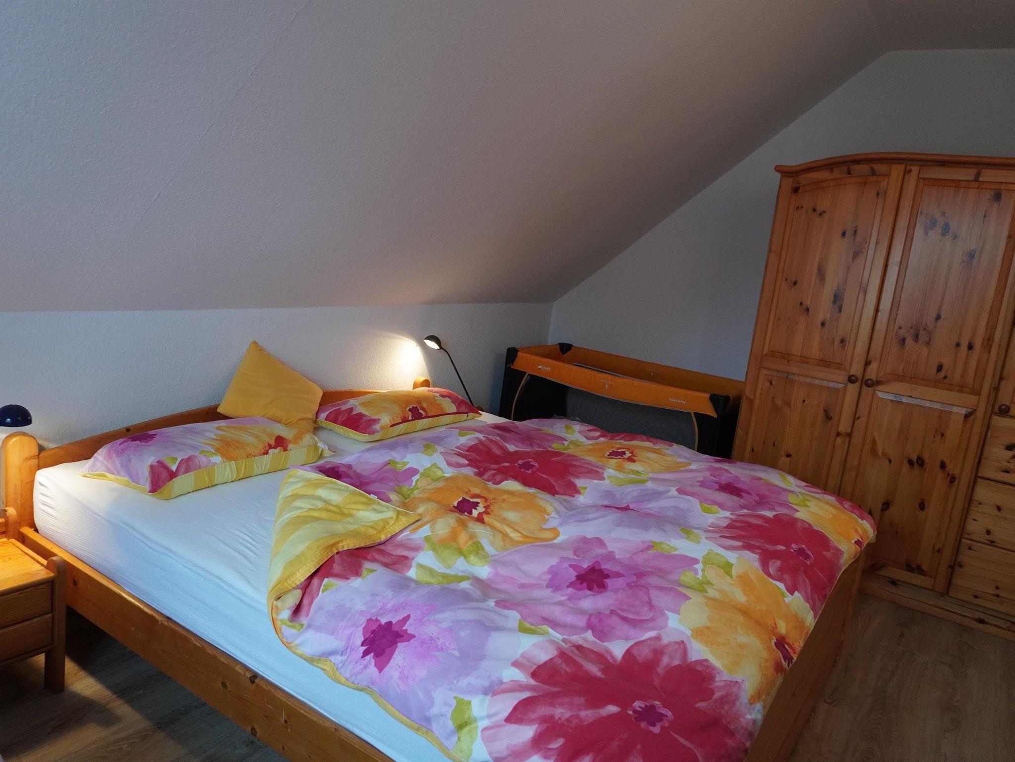 Im Erdgeschoss empfängt Sie ein offener Wohn- Essbereich, ausgestattet mit Sat TV und Stereoanlage. Die separate, voll ausgestattete Küche mit Spülmaschine, hält einige zusätzliche elektrische Kleingeräte wie Toaster, Waffeleisen und Mixer für Sie bereit. Im Obergeschoss erwartet Sie ein Schlafzimmer mit einem Doppel- und einem Einzelbett, sowie ein Schlafzimmer mit zwei Einzelbetten. Im Badezimmer mit Dusche und WC, steht Ihnen eine Waschmaschine zur Verfügung. Für unsere kleinen Gästen ist ein Reisebett und ein Kinderhochstuhl vorhanden.