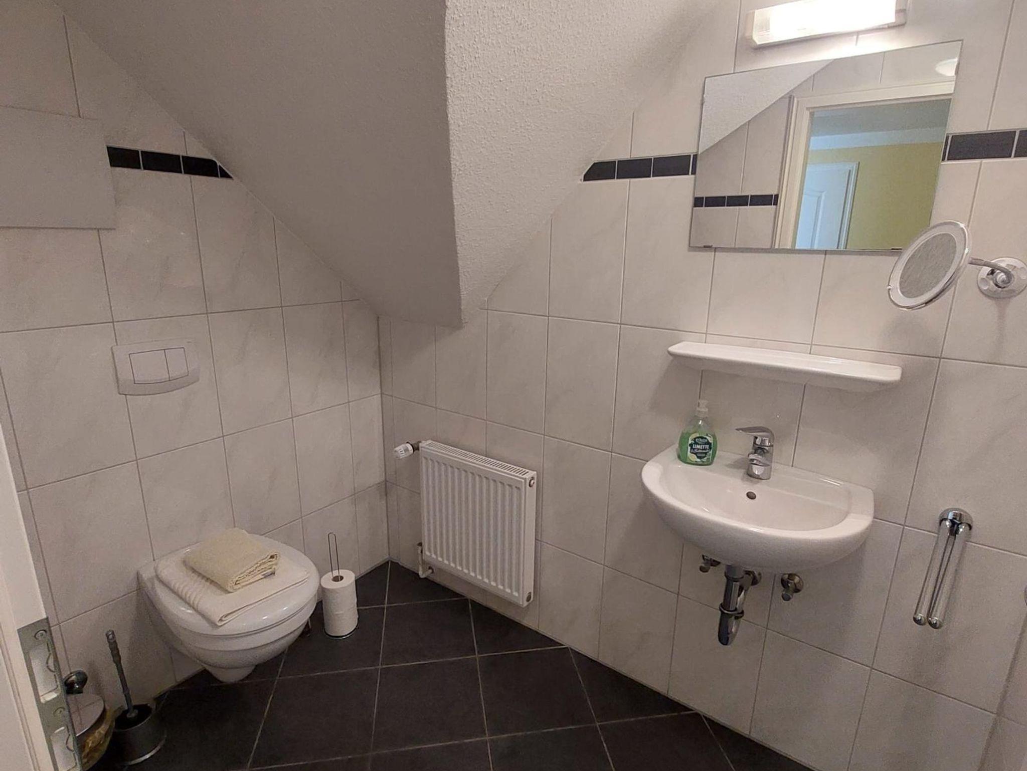 Unsere Ferienwohnung Kleeblatt hat eine Wohnfläche von ca. 65 m². Im Erdgeschoss befinden sich eine komplett eingerichtete Küche mit Backofen, Cerankochfeld, Kühlschrank mit Gefrierfach, Spülmaschine und diversen elektrischen Geräten wie Kaffeemaschine, Wasserkocher, Toaster etc. Des Weiteren werden Sie hier ein Bad mit Dusche/WC vorfinden. Im Obergeschoss erwarten Sie ein gemütlich eingerichteter Wohnbereich mit Flachbildschirm, 2 Schlafzimmer (Doppel- und Einbettzimmer) sowie ein weiteres Bad mit Badewanne/WC.