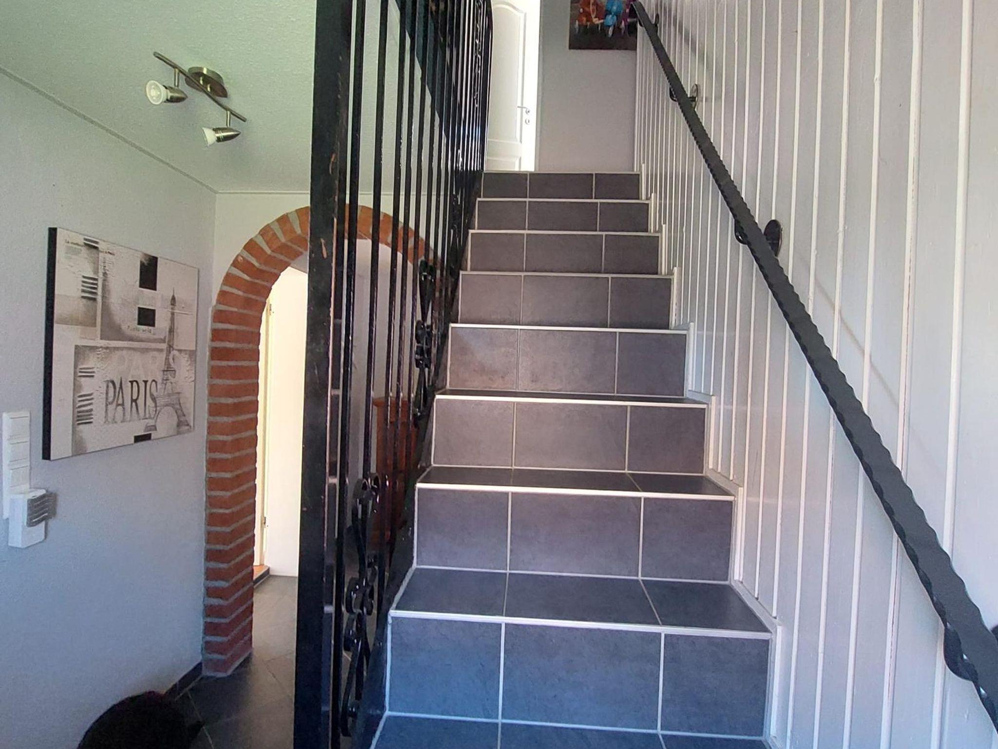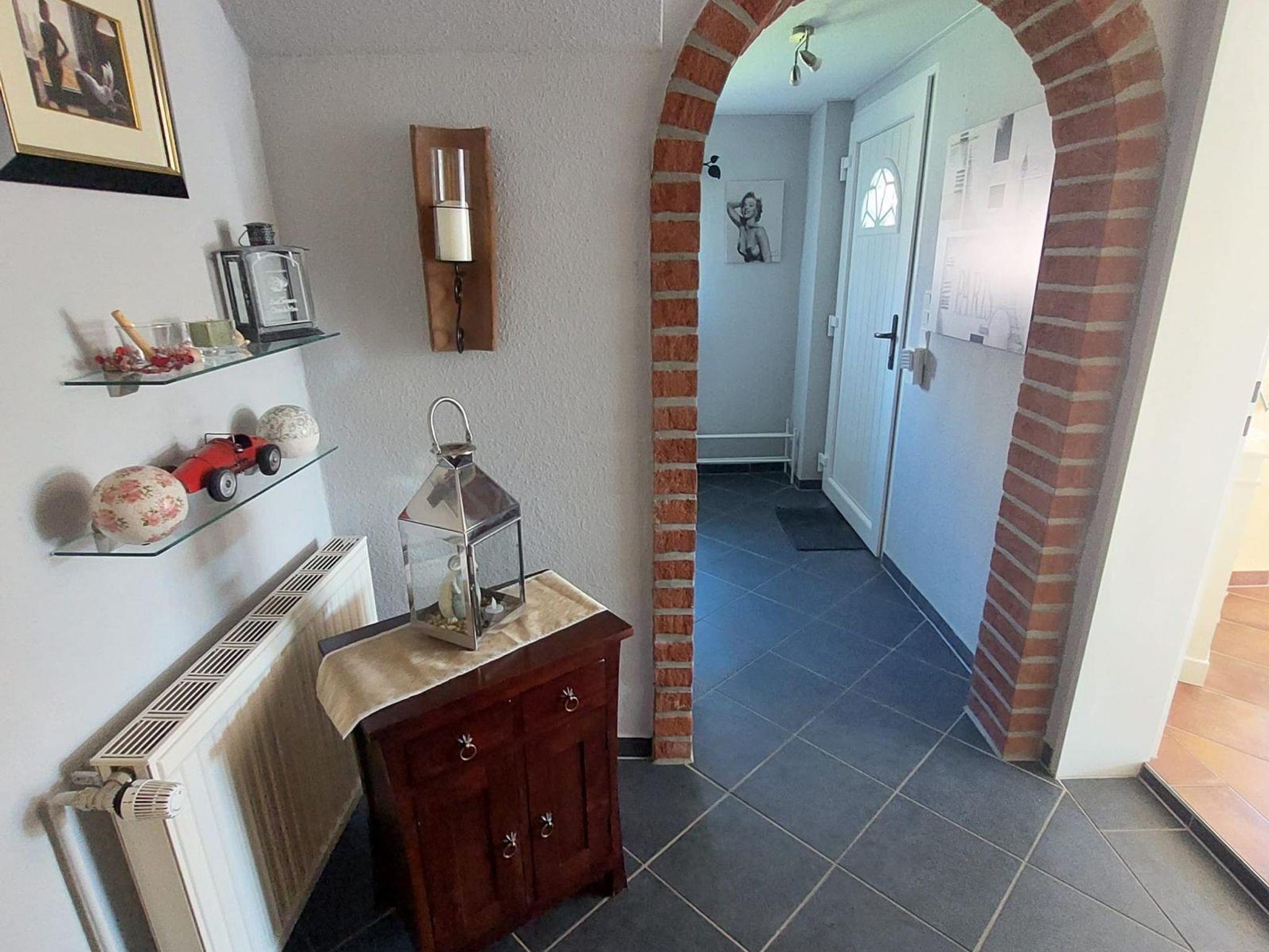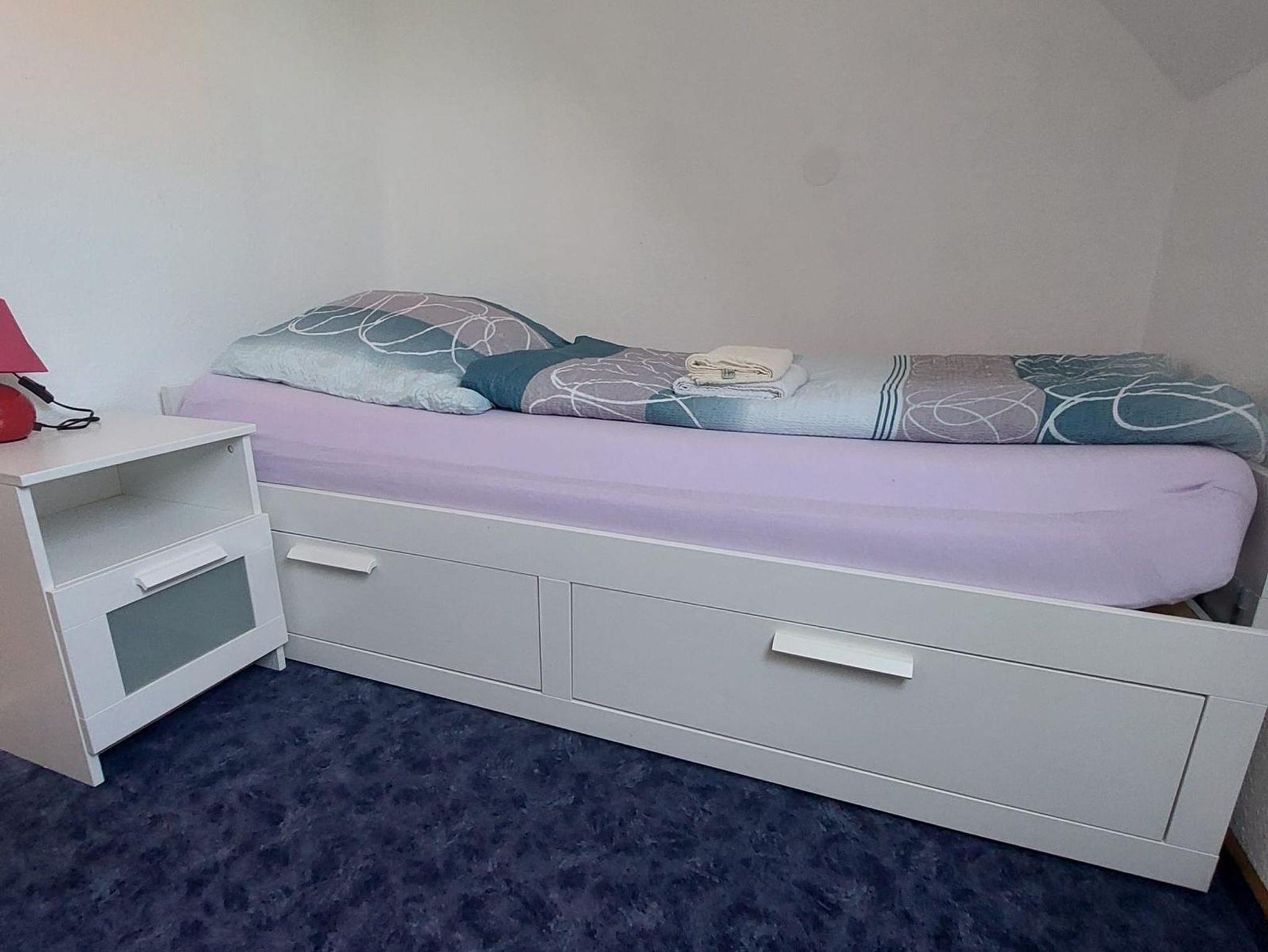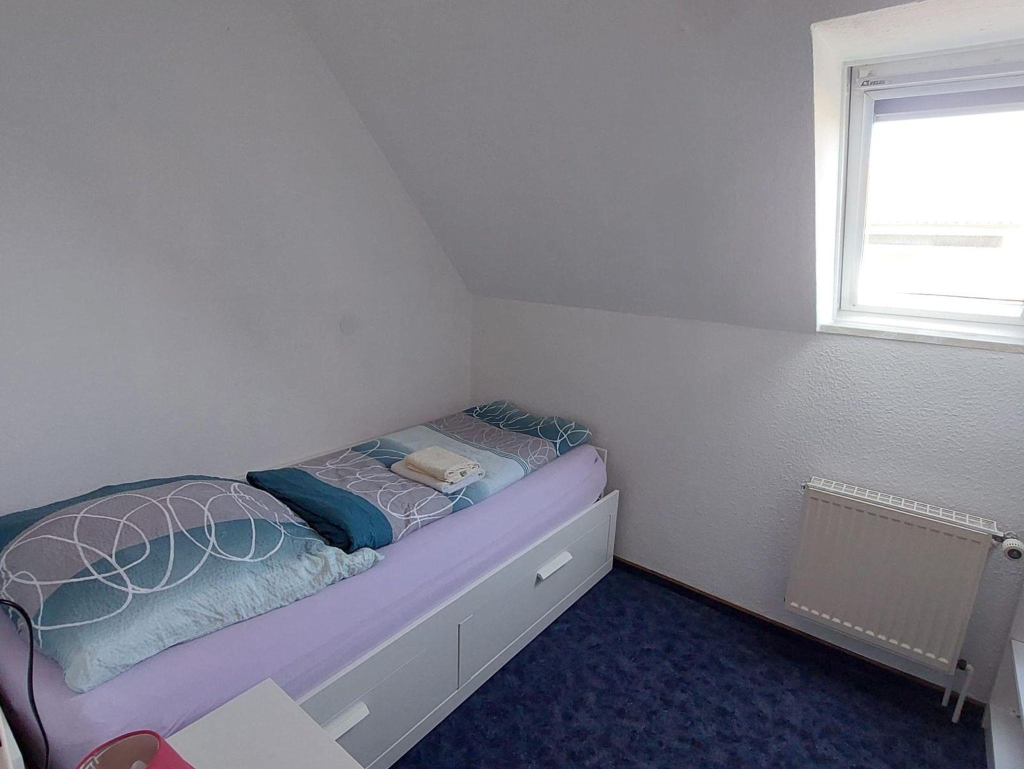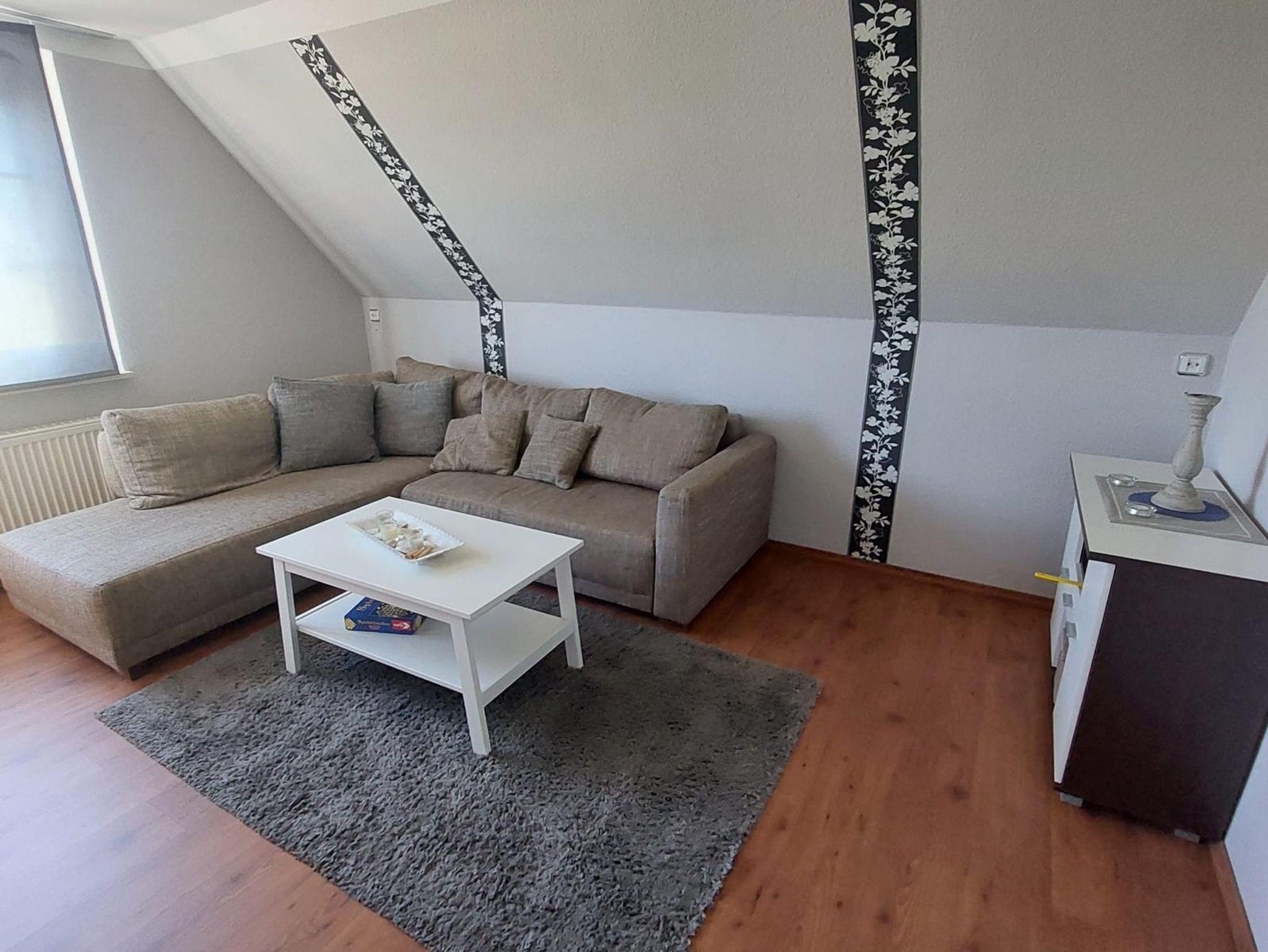 Die Ferienwohnung Vorne (ca. 80 m²) erstreckt sich über das Erd- und Obergeschoß unseres Ferienhauses. Vom gemütlichen Wohn-/Essbereich mit integrierter Küchenzeile gelangen Sie auf die Terrasse mit Gartenmöbeln. Die Schlafzimmer teilen sich in zwei mit jeweils einem Doppel- und das Weitere mit einem Einzelbett auf.