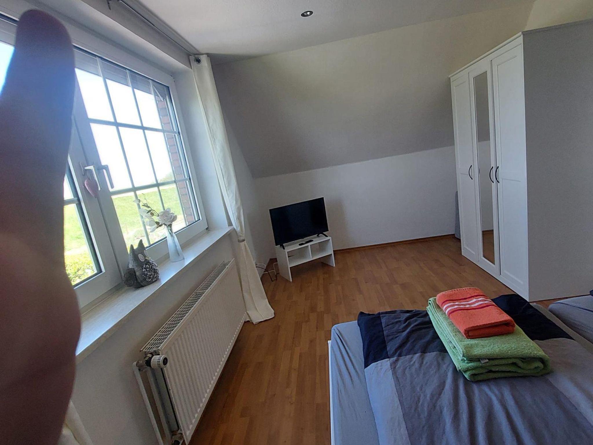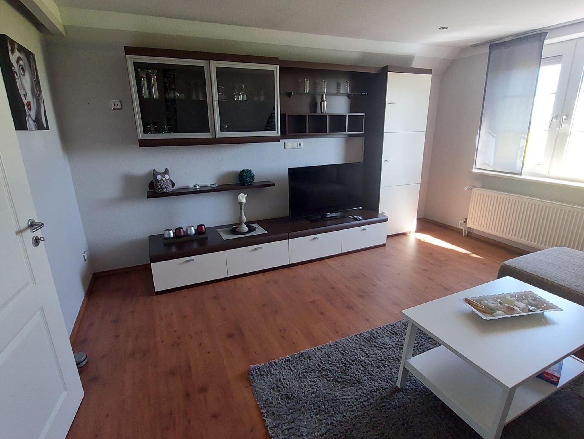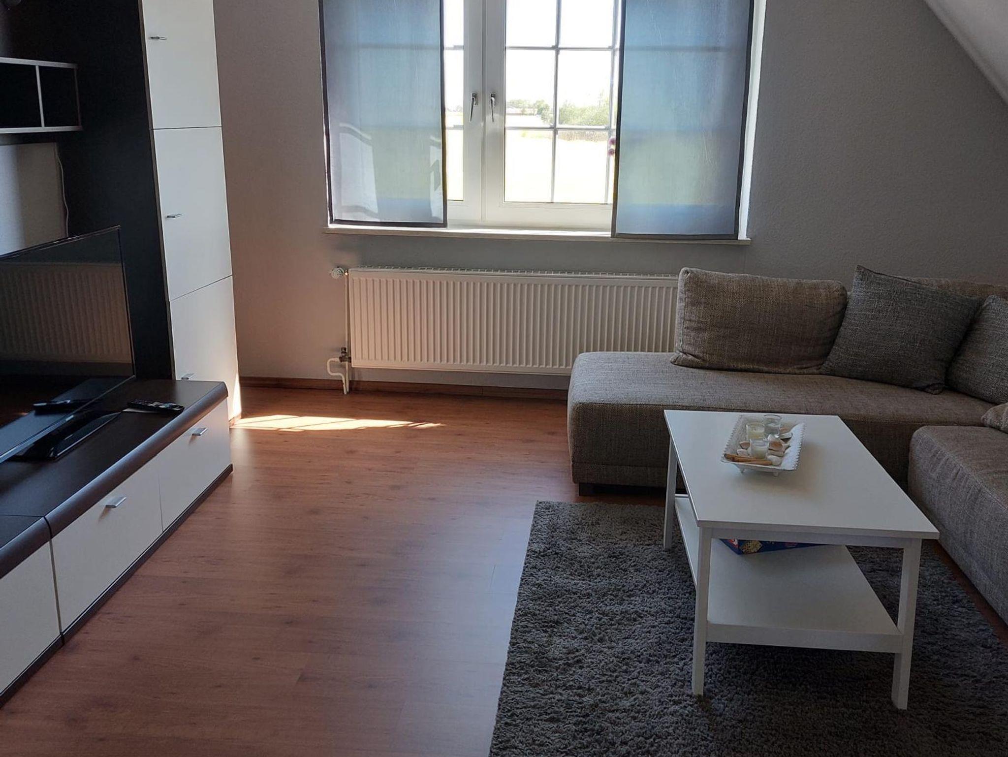 Unsere kleine Ferienwohnung im Erdgeschoss (ca. 45 m²) liegt direkt vorm Deich. Im Wohn-/Essbereich werden Sie eine ein Sat-TV und Stereoanlage sowie eine Küchenzeile mit div. elektr. Geräten wie Kaffeemaschine, Wasserkocher, Toaster u.s.w. vorfinden.