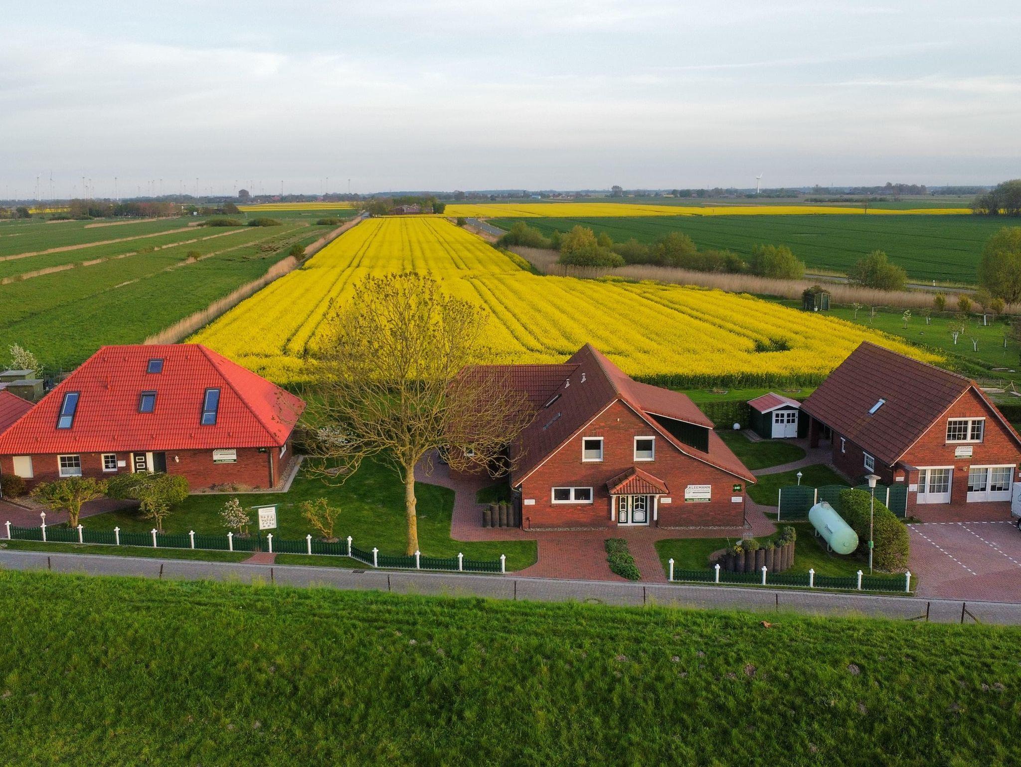 Unser Ferienhaus Glücksklee befindet sich in ruhiger Lage direkt vorm Deich und teilt sich in fünf Ferienwohnung auf. Alle Ferienwohnungen bieten die Möglichkeit den erlebnisreichen Tag auf der Terrasse, dem Balkon bzw. Freisitz im Garten ausklingen zu lassen. Waschmaschine und Trockner stehen für Sie zur Mitnutzung im separaten Wäscheraum bereit. Direkt vor dem Haus befindet sich für jede Wohnung ein PKW-Einstellplatz und Ihre mitgebrachten Fahrräder können in einem separaten Abstellraum untergebracht werden. Ihre Betten sind bereits bei Anreise bezogen undfür unsere kleinen Gäste stellen wir gerne ein Reisebett sowie einen Kinderhochstuhl zur Verfügung.