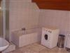 Tageslicht Badezimmer mit Badewanne, Dusche, WC und Waschmaschine.
