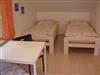 Obergeschoss: 1 Schlafzimmer mit Doppelbett. 1 Schlaf-/Kinderzimmer mit 2 Einzelbetten.