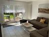 Erdgeschoss: Wohnzimmer mit moderner Wohnlandschaft und grossem Flachbild-TV mit Satempfang.