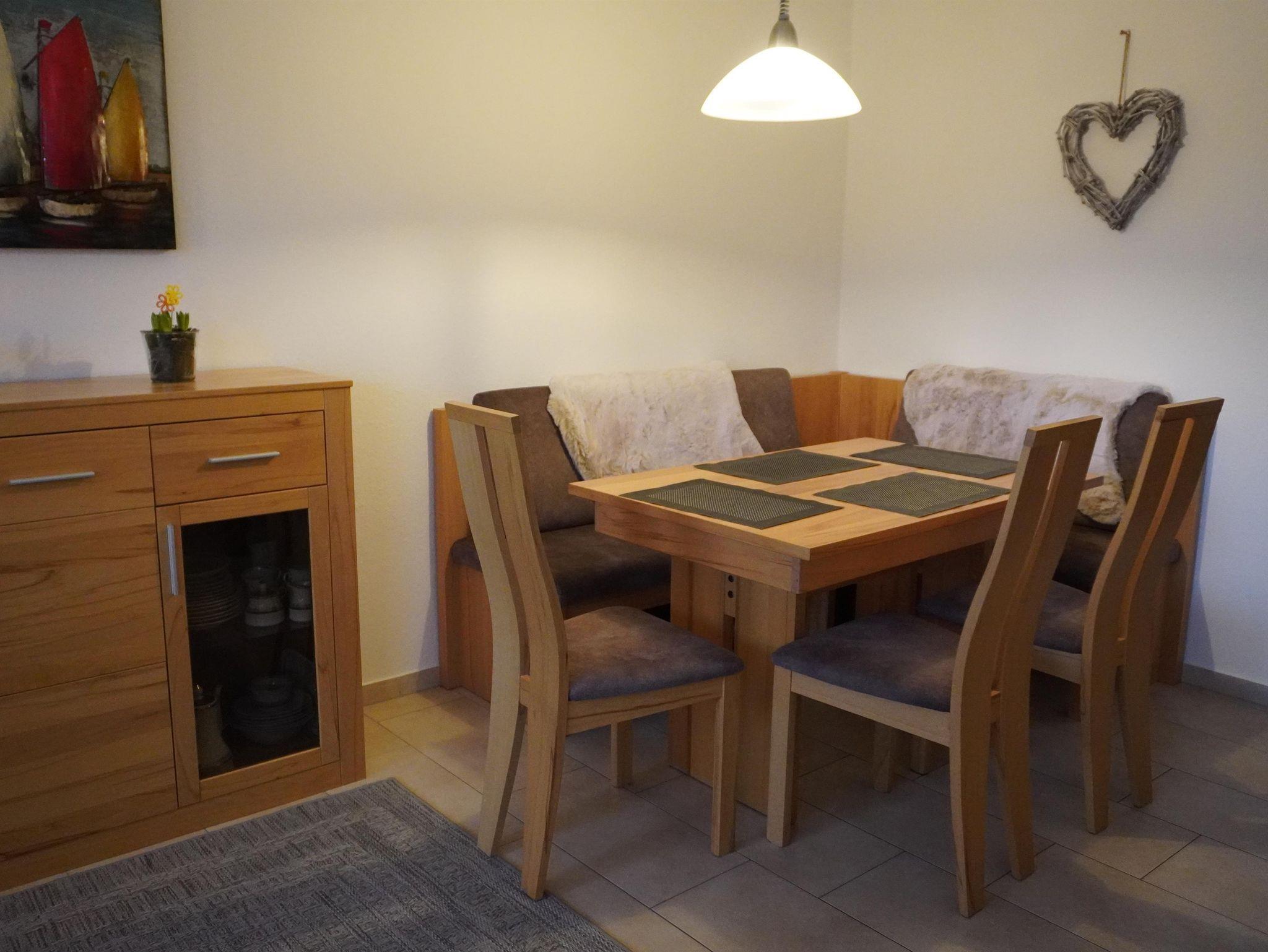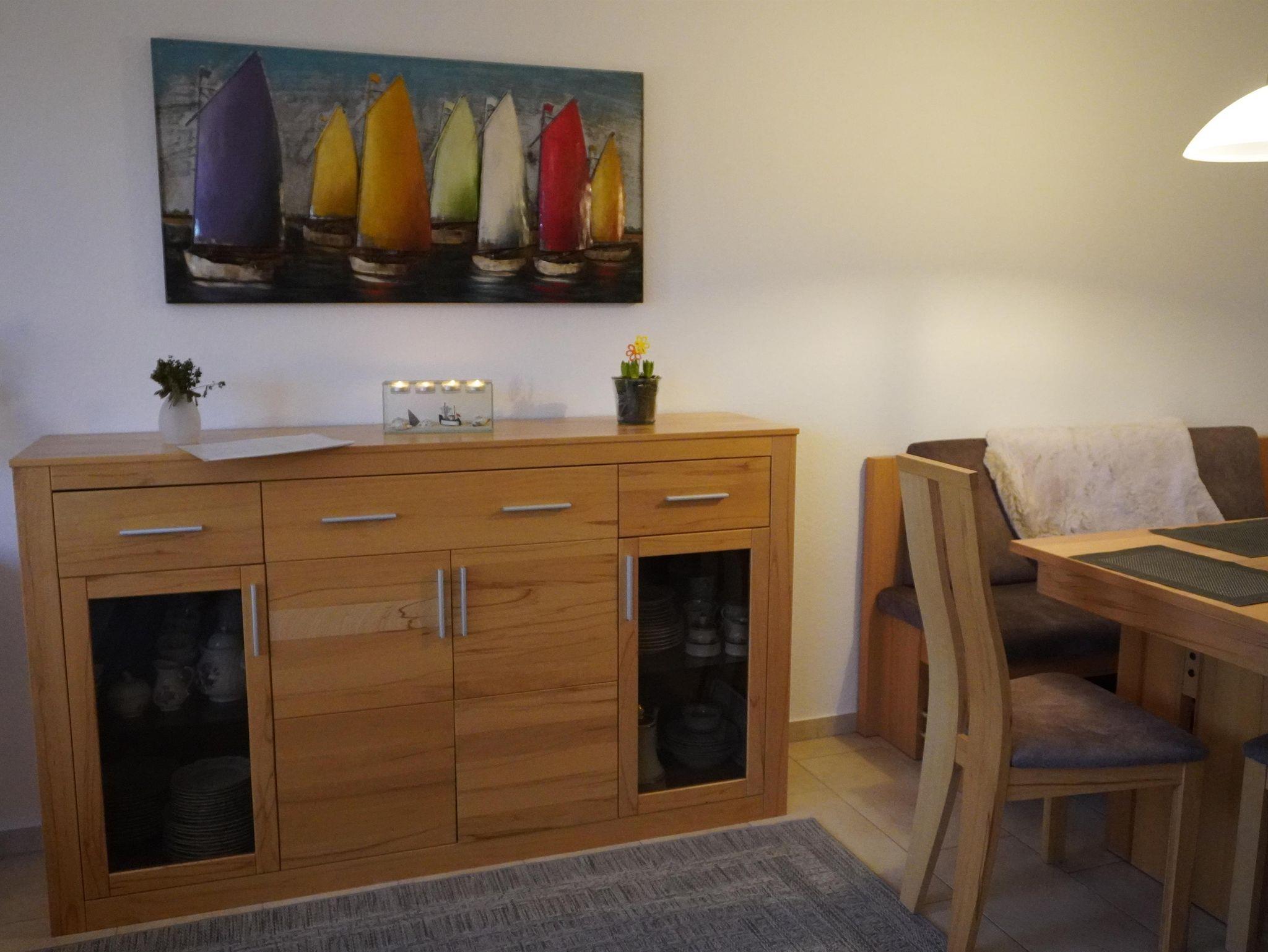 Auf einer Wohnfläche von ca. 84 m²befindet sich im Erdgeschoss eine separate Küche, welche an elektronischen Geräten keine Wünsche offen lässt. Des Weiteren werden sie hier ein gemütlich gestalteten Wohn-/Essbereich vorfinden. Für Unterhaltung sorgen neben einem Fernseher mit Blue-ray-Player und einer Stereoanlage außerdem Spiele und Bücher. WLAN ist ebenfalls verfügbar. Im Obergeschoss befinden sich 2 Schlafdomizile (Doppel- und Zweibettzimmer) sowie das Bad mit Dusche/WC. Für unsere kleinen Gäste haben wir Reisebett und einen Hochstuhl im Angebot.