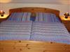 Schlafzimmer mit Doppelbett und einem Vollkinderbett (ca. 140cm).