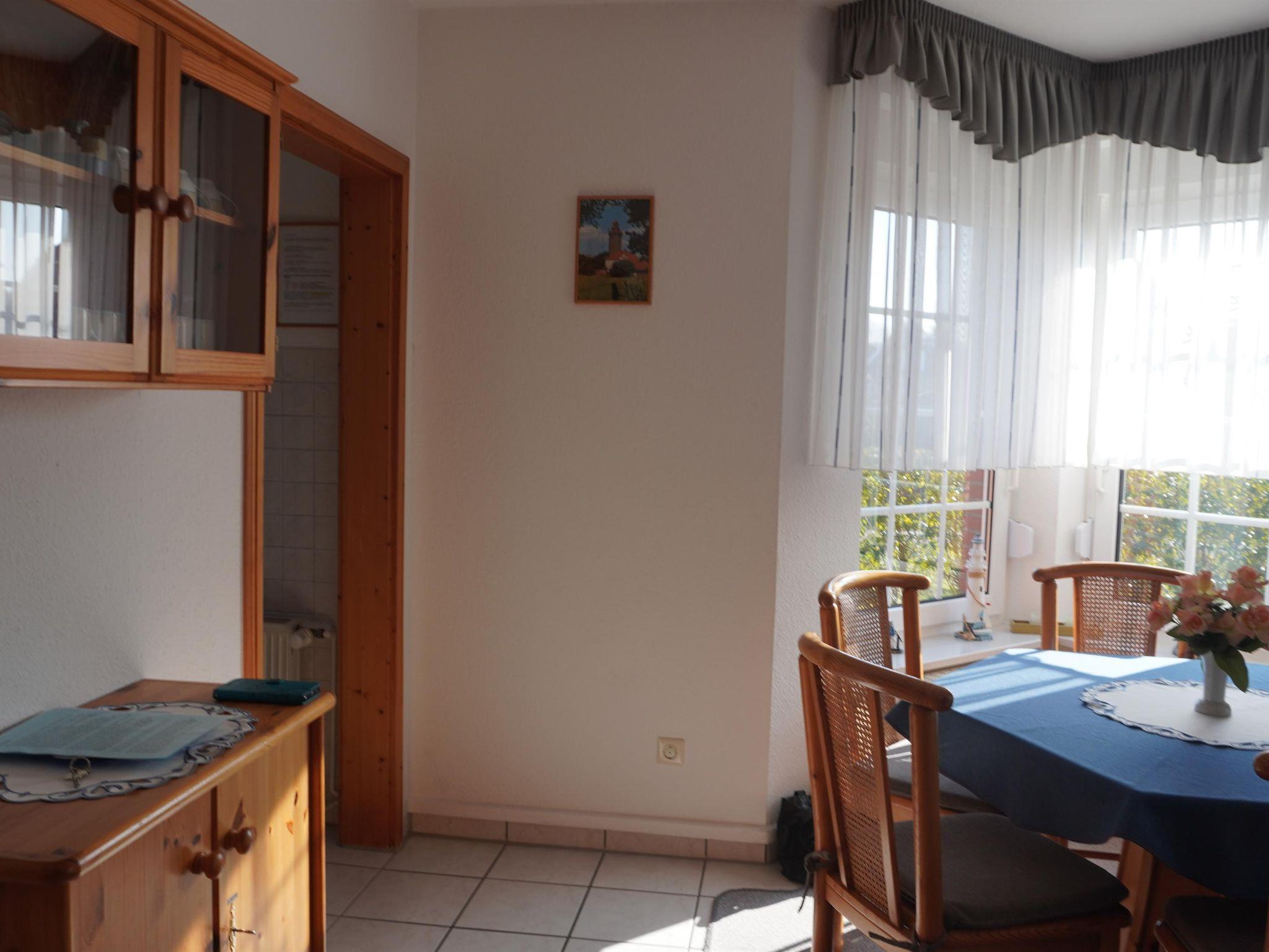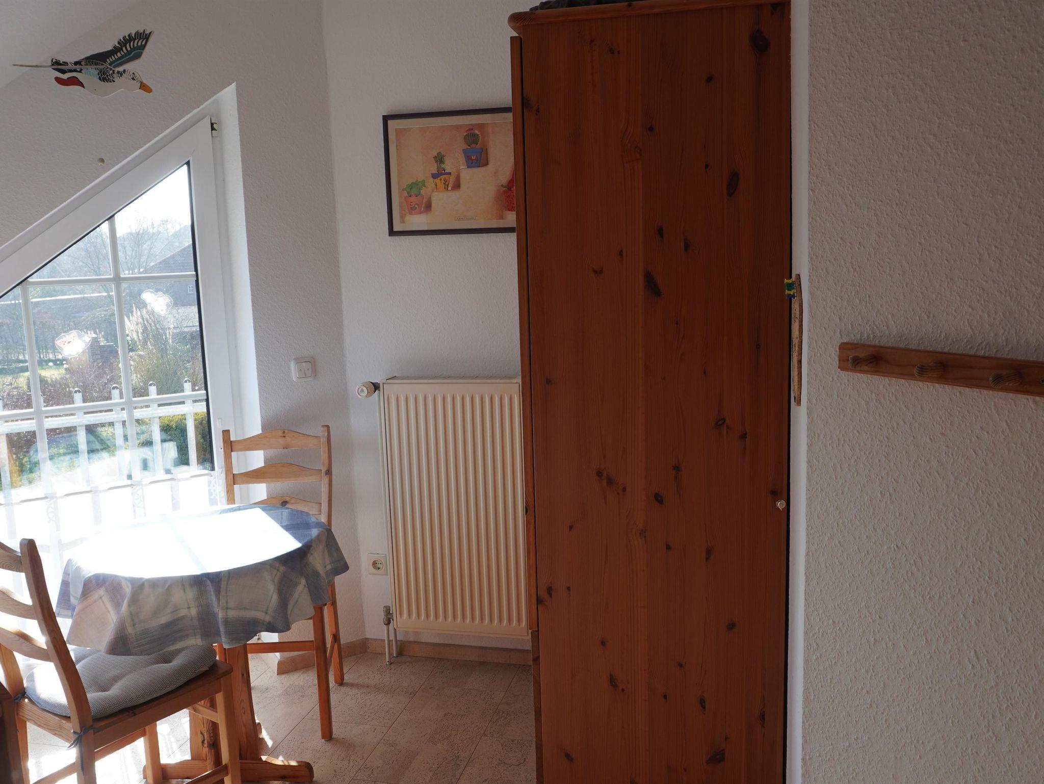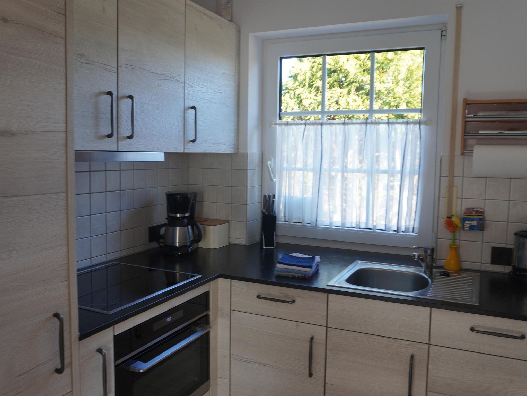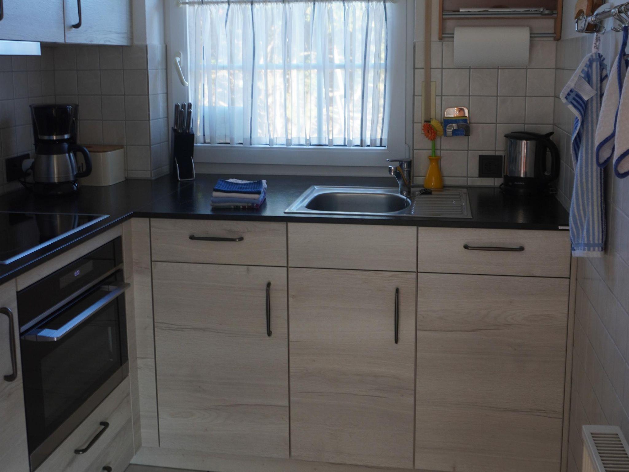 Durch den Eingangsbereich im Erdgeschoss, von dem auch ein Bad mit Dusche und WC abgeht, gelangen Sie in unser komplett gefliestes Ess- / Wohnzimmer. Neben einer Esstischgarnitur für 5 Personen, welche sie im Erker vorfinden, steht Ihnen im Wohnzimmerbereich eine gemütliche Rundcouch mit entsprechendem Couchtisch sowie eine offen gestaltete Schrankwand zur Verfügung. Zur Unterhaltung stehen ein SAT-TV, ein DVD-Player und eine HIFI- Anlage bereit. Für die Kommunikation im Internet bieten wir Ihnen kostenloses W-LAN an. Die angrenzende, im November 2019 eingebaute, Einbauküche, ist neben einem Kühlschrank mit Gefrierfach, einem Backofen, einer Geschirrspülmaschine, einer integrierten Mikrowelle, diversen Küchen-Elektrogeräten auch mit reichlich Geschirr ausgestattet. Geschirrtücher, Spül- und Reinigungsmittel sind ebenso wie diverse Grundgewürze, Mehl und Zucker vorhanden. Hier können Sie nach herzenslust kochen und genießen.