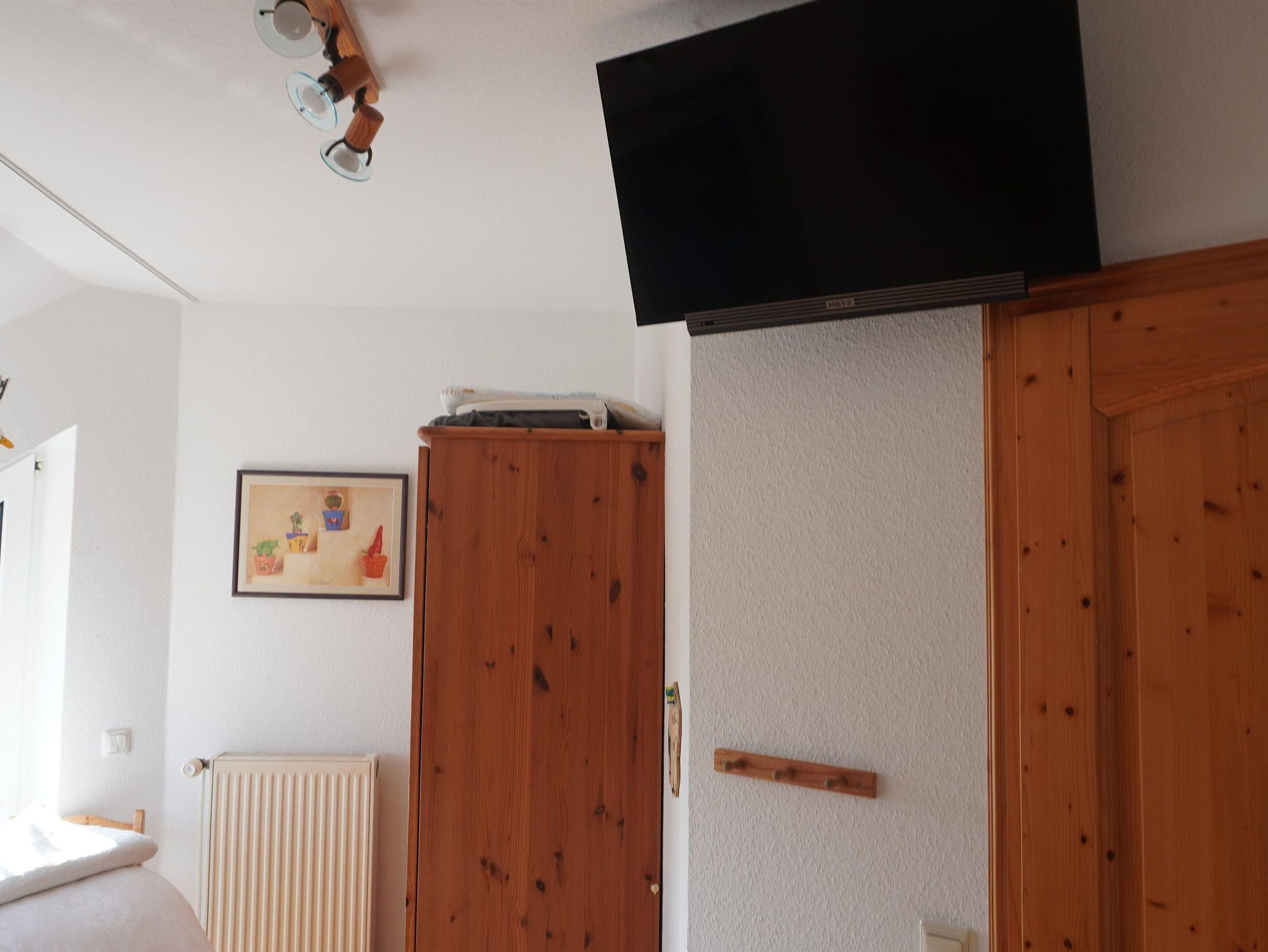 Im Obergeschoss, welches mit Korkboden ausgestattet ist, erwarten Sie zwei Schlafzimmer (Doppel- und Zweibettzimmer) mit Rücken und Allergikergerechten Matratzen, Oberbetten und Kissen. Ein Luftbett (1,00 m x 2,00 m x 0,40 m) kann als weitere Schlafmöglichkeit aufgestellt werden. Desgleichen ein Baby–Reisebett mit Oberbett und Kissen. Die Schlafzimmer sind durch elektrische Rollläden, voll zu verdunkeln. Das Schlafzimmer wurde im Frühjahr 2023 renoviert und komplett neu eingerichtet. Im Zweibettzimmer finden Sie einen Laptop-Möbeltresor sowie ein internetfähiges TV-Gerät.