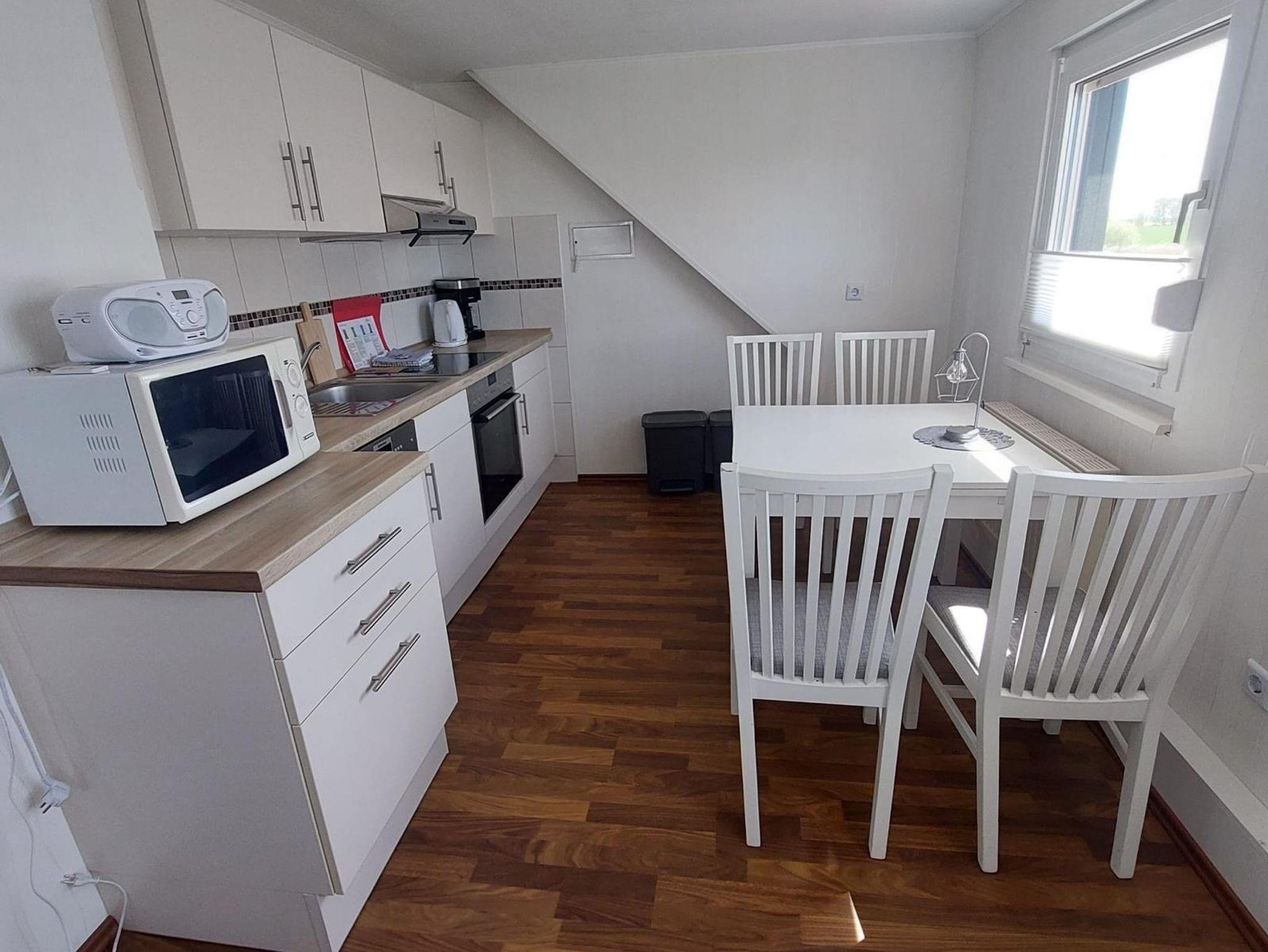Unsere Ferienwohnung Kleeblatt hat eine Wohnfläche von ca. 65 m². Im Erdgeschoss befinden sich eine komplett eingerichtete Küche mit Backofen, Cerankochfeld, Kühlschrank mit Gefrierfach, Spülmaschine und diversen elektrischen Geräten wie Kaffeemaschine, Wasserkocher, Toaster etc. Des Weiteren werden Sie hier ein Bad mit Dusche/WC vorfinden. Im Obergeschoss erwarten Sie ein gemütlich eingerichteter Wohnbereich mit Flachbildschirm, 2 Schlafzimmer (Doppel- und Einbettzimmer) sowie ein weiteres Bad mit Badewanne/WC.