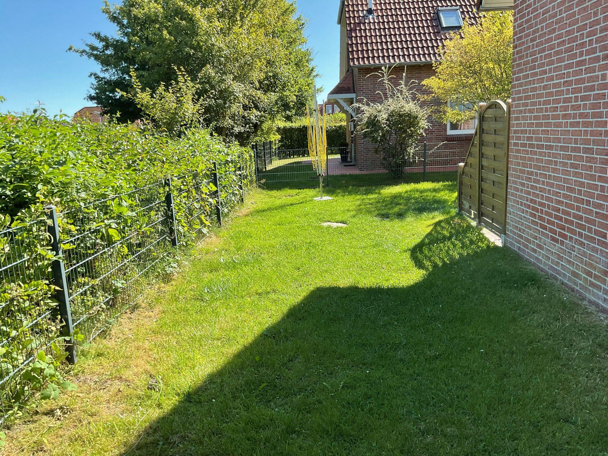 Von hier aus haben sie einen direkten Zugang zum eingezäunten Garten mit Terrasse mit Gartenmöbeln.