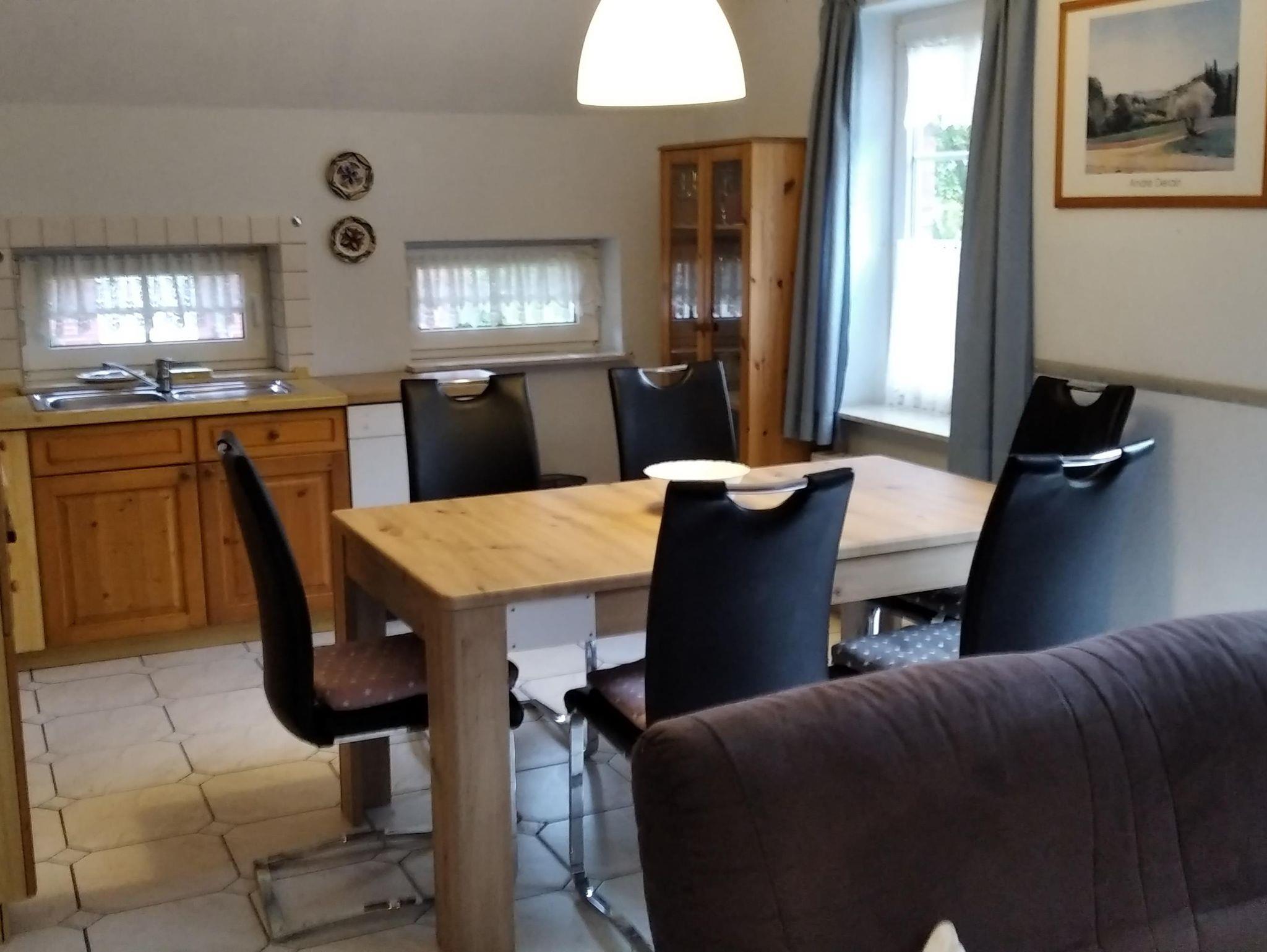 Im Erdgeschoss befindet sich ein Wohn-, Esszimmer mit F-Sat-TV, DVD-Player und Stereoanlage, sowie ein Bad mit Badewanne und integrierter Dusche, WC und Waschmaschine und das erste Schlafdomizil mit Doppelbett. Im Obergeschoss erwarten Sie dann die andere zwei Schlafdomizile (ein Doppelbett, 1 Einzelbett), sowie ein Gästebad bestehend aus WC und Waschbecken. Für unsere kleinen Gäste finden Sie im Haus ein Babybett, sowie zwei Kinderhochstühle.