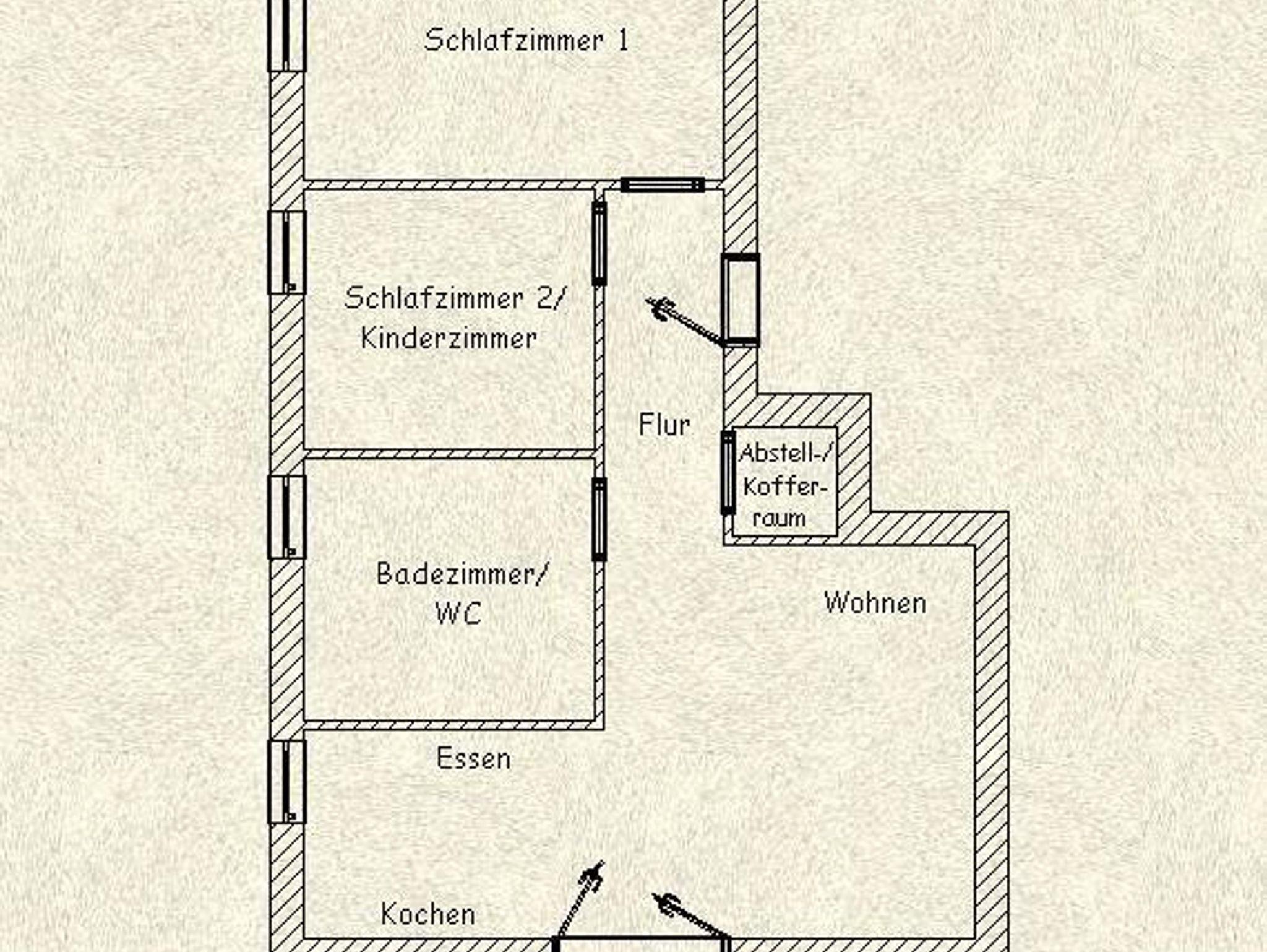 Schlafmöglichkeiten: Eines mit einem Doppelbett (1,80m x 2,00m) und einem Kinderbett (bis 3 Jahre) sowie ein Weiteres mit einem französchen Bett (1,40m x 2,00m) für 2 Personen. Für Kinder haben wir ein drittes Schlafzimmer mit zwei Einzelbetten. Angrenzend zur voll ausgestatteten Küche mit Esstisch, befindet sich das große Wohnzimmer mit Sat-TV. Beide Räume verfügen über genügend Sitzmöglichkeiten. Gepäckraum. Bad mit Dusche/WC, sep. WC. Terrasse vorhanden.