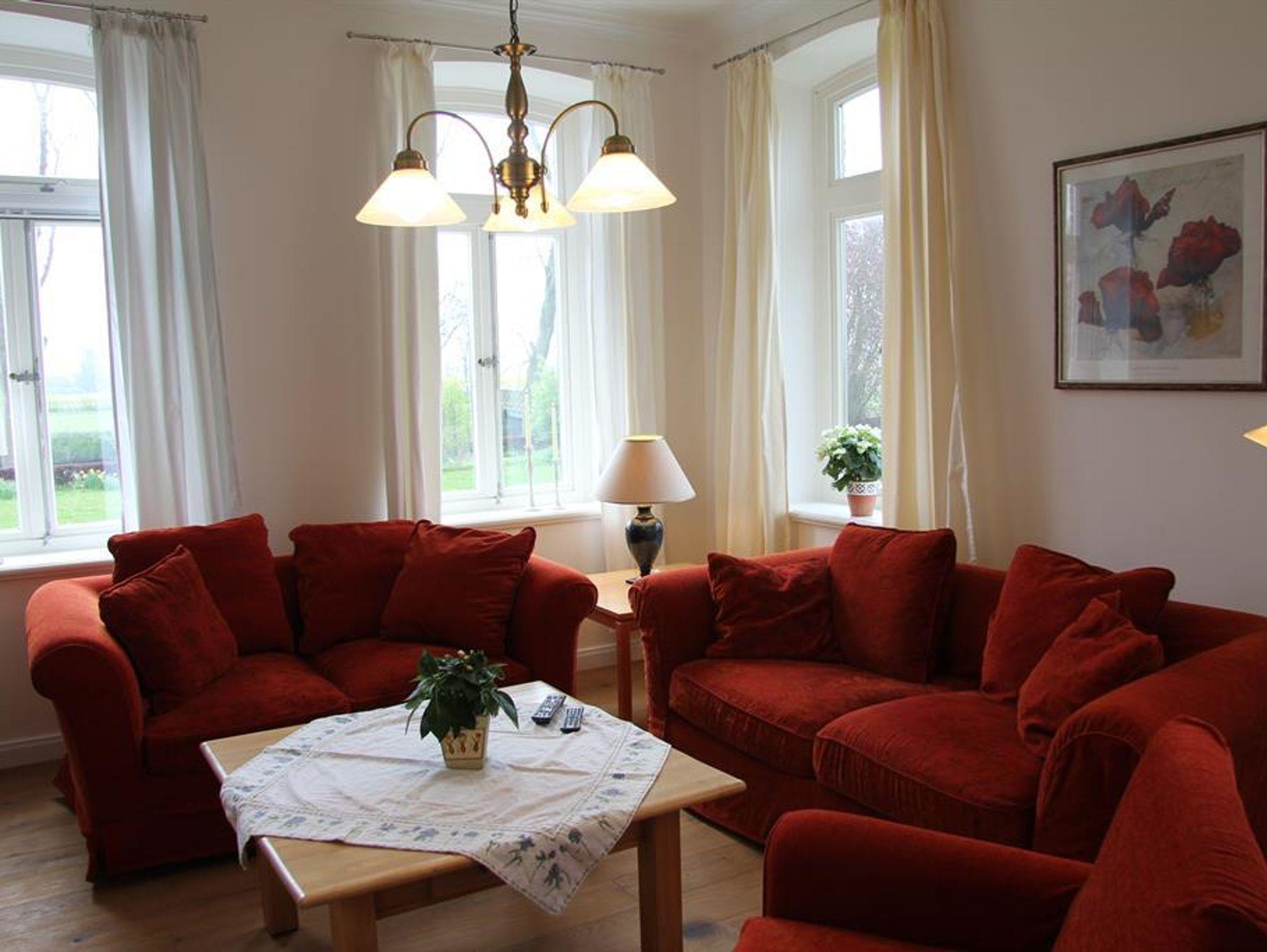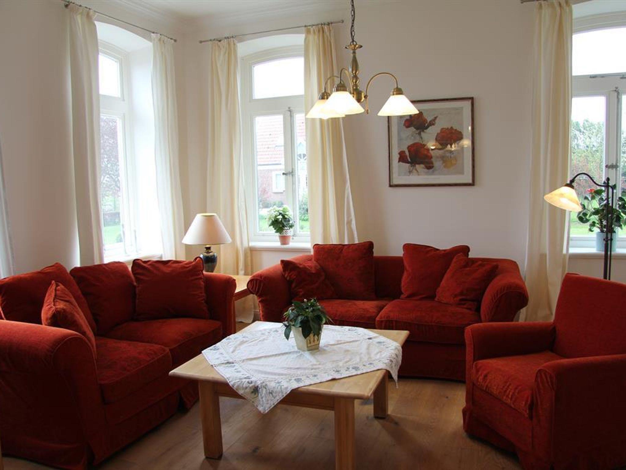 Die Ferienwohnung Kirsche ist ebenerdig und bietet Ihnen auf ca. 75m² alles, was Sie für einen perfekten Hofurlaub an der Nordsee brauchen. Neben einer vollausgestatteten und separaten Küche, finden Sie im Wohnzimmer eine gemütliche Sitzgarnitur und Sat-TV. Als Schlafmöglichkeiten haben Sie ein Doppelzimmer und ein Dreibettzimmer. In der Küche und im Bad gibt es eine Fußbodenheizung.