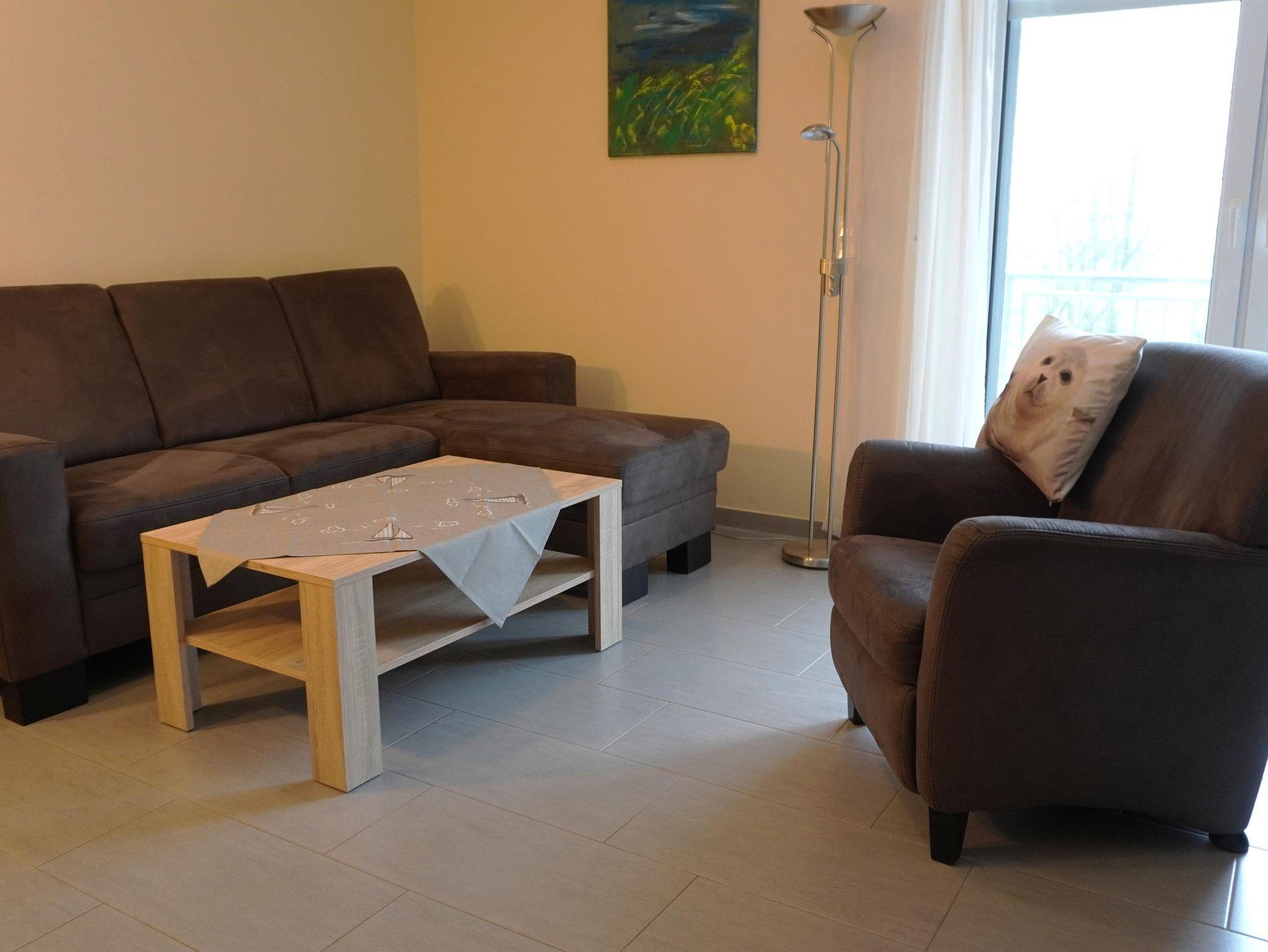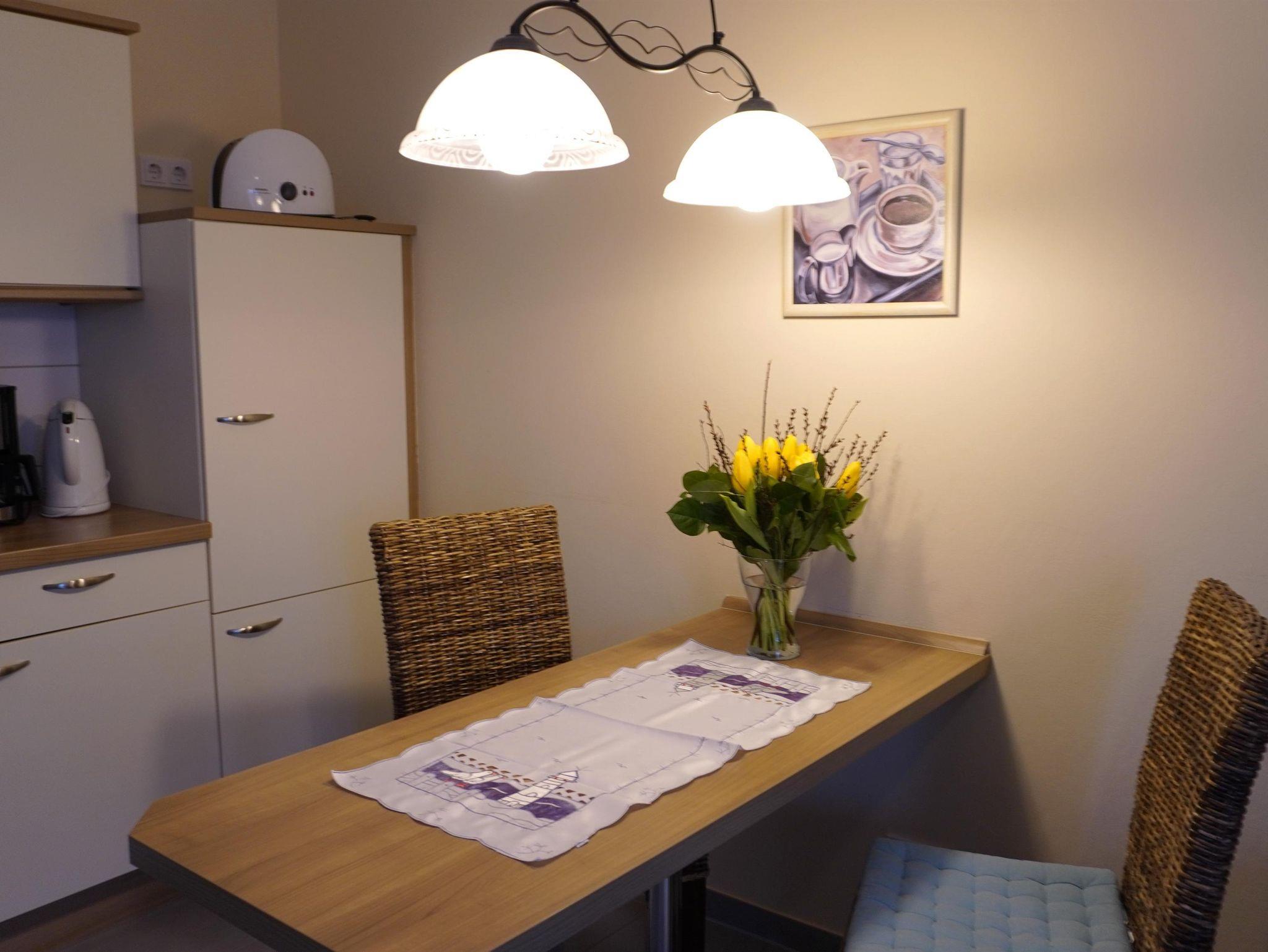 Die Wohnung „Seewind“ befindet sich im Obergeschoss des Hauses und hat einen Balkon. Es gibt eine separate vollausgestattete Küche mit Esstisch, eine Wohnzimmer mit gemütlicher Ledergarnitur und Sat-TV. Als Schlafmöglichkeiten dienen ein Doppel- und ein Zweibettzimmer. Bad mit Dusche und WC.