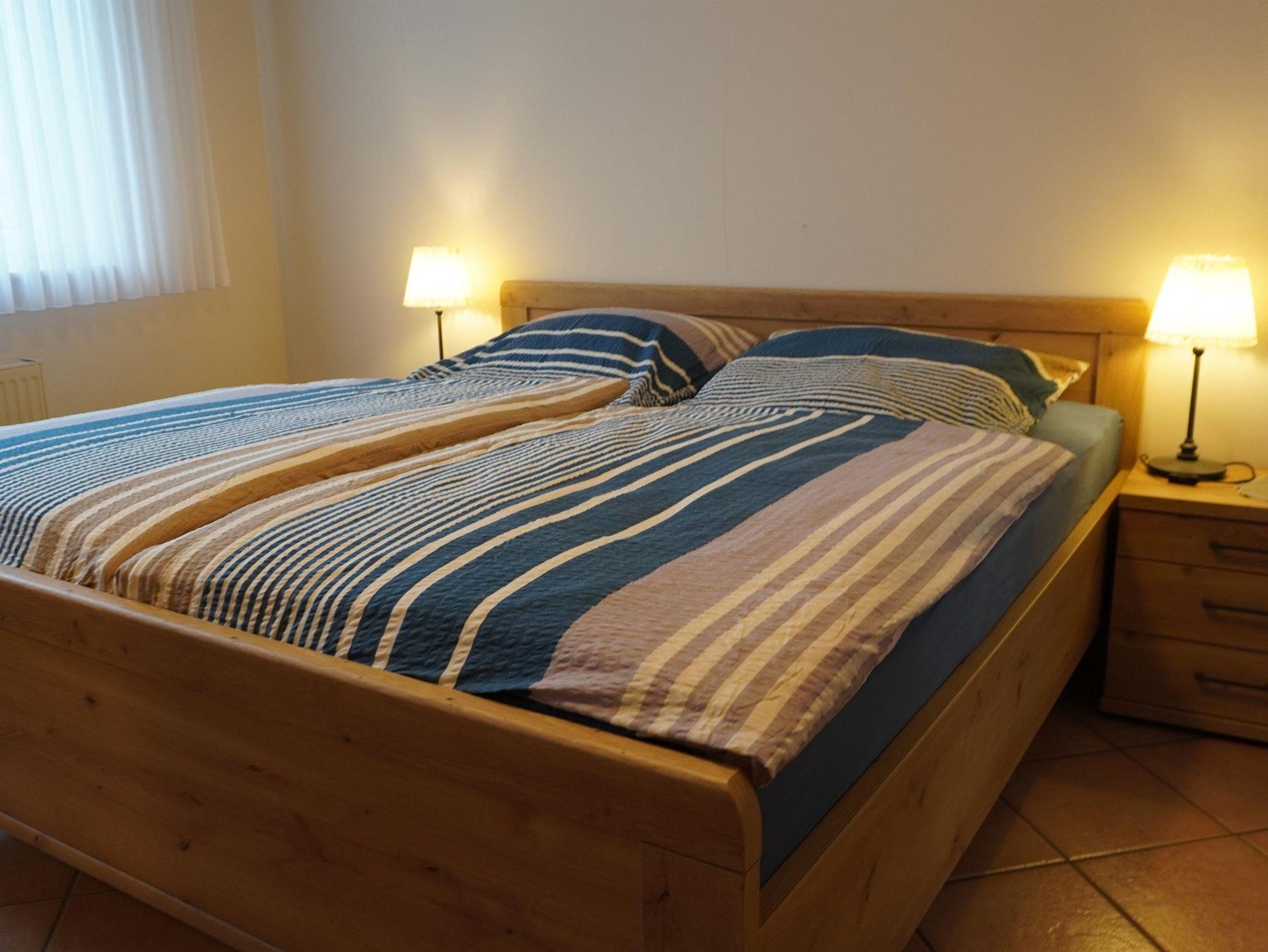 Schlafmöglichkeiten: Eines mit einem Doppelbett (1,80m x 2,00m) und einem Kinderbett (bis 3 Jahre) sowie ein Weiteres mit einem französchen Bett (1,40m x 2,00m) für 2 Personen. Für Kinder haben wir ein drittes Schlafzimmer mit zwei Einzelbetten. Angrenzend zur voll ausgestatteten Küche mit Esstisch, befindet sich das große Wohnzimmer mit Sat-TV. Beide Räume verfügen über genügend Sitzmöglichkeiten. Gepäckraum. Bad mit Dusche/WC, sep. WC. Terrasse vorhanden.