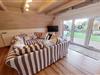 Stueetage: (åbent køkken(brødrister, komfur, kaffemaskine, ovn, mikrobølgeovn, opvaskemaskine , køle-fryseskab, Blender), stue / spisestue(Fjernsyn, spisebord, sofahjørne), badeværelse(bruser, håndvask, toilet)) Loft: (soveværelse(dobbeltseng), balkon) varme, terrasse, have, havemøbler, parkering