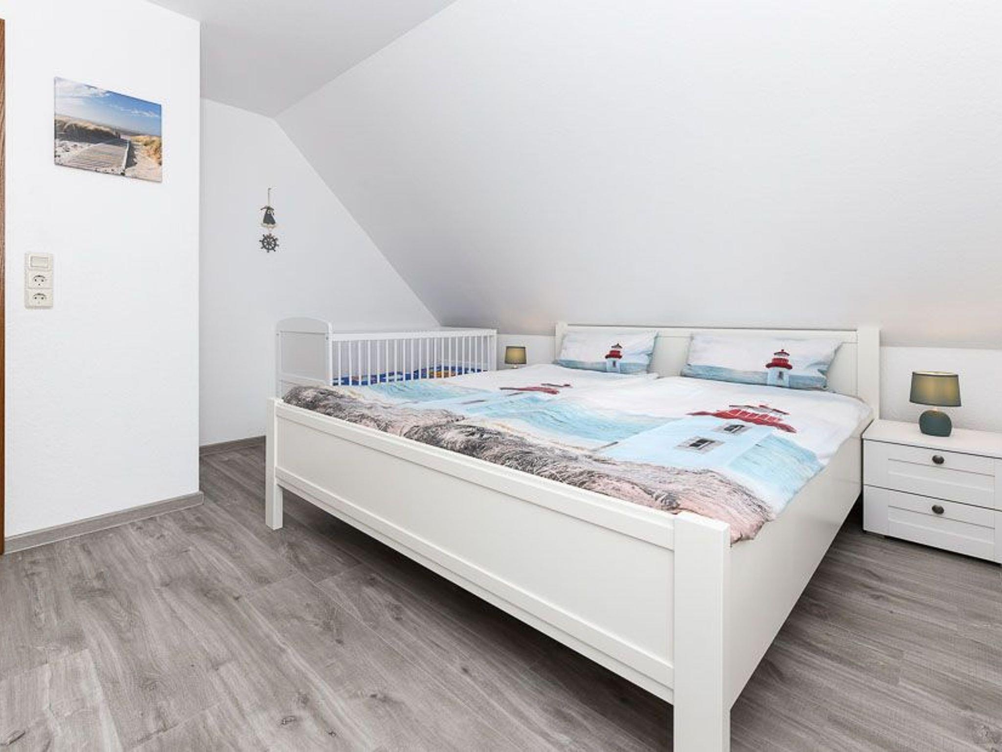Größe ca. 85 Quadratmeter, Wohnzimmer, Küche, Schlafzimmer, zweites separates Schlafzimmer/Kinderzimmer, drittes separates Schlafzimmer/Kinderzimmer, Badezimmer mit Dusche, Waschtisch und WC, Badezimmer mit Badewanne, Waschtisch und WC, Erdgeschoss, Obergeschoss, Terrasse, Koffer-/Abstellraum, optimal für 2 bis 6 Personen und zusätzlich ein Kleinkind. Es stehen 2 Pkw-Parkplätze zur Verfügung. Die Schlafzimmer befinden sich im 1. und 2. Obergeschoss.