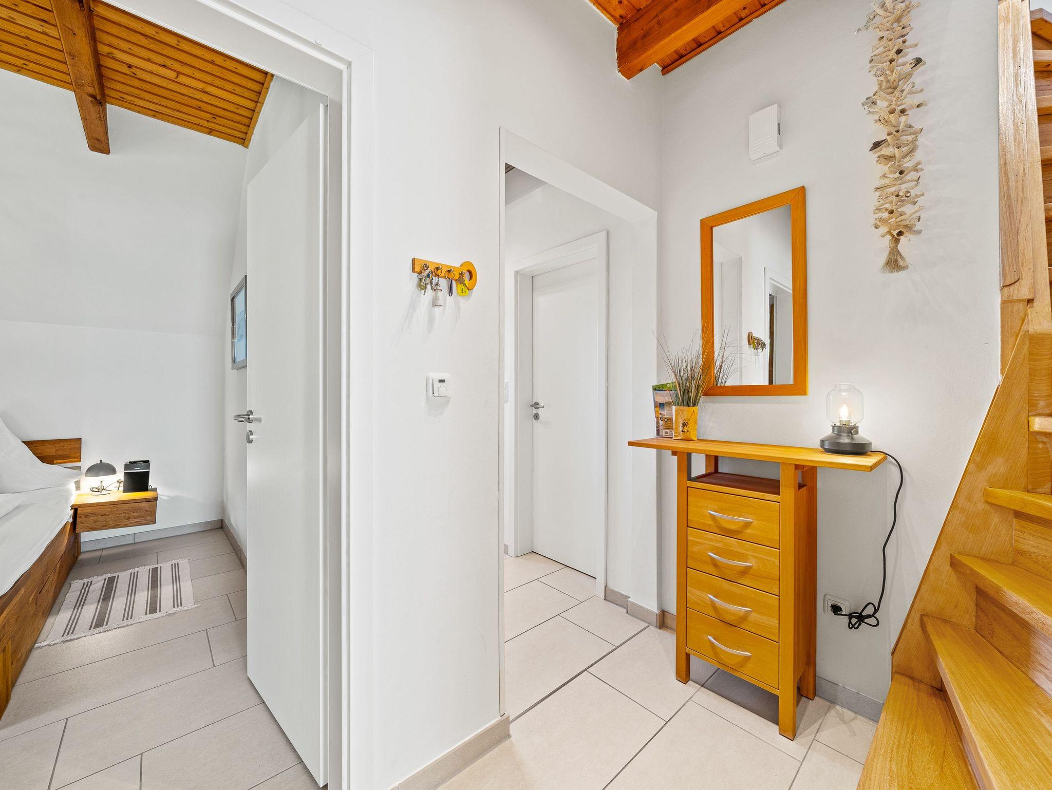 Die Komfort-Doppelhaushälfte ist sehr hochwertig ausgestattet. Im Erdgeschoss befinden sich das gemütliche Wohnzimmer mit Kaminofen, der offene Küchenbereich mit vollausgestatteter Einbauküche, ein Schlafzimmer mit Doppelbett und Babyreisebett sowie ein Duschbad. Im Dachgeschoss befinden sich ein zweites Duschbad mit Waschmaschine, zwei Schlafzimmer mit Doppelbetten und eine gemütliche Leseecke. Im Wohnzimmer und in allen Schlafzimmern gibt es Radios mit Bluetooth. Das komplette EG ist mit Fußbodenheizung und elektrischen Rollladen ausgestattet. Alle Fenster und Türen verfügen über Insektenschutzgitter. Beide Bäder verfügen über bodengleiche Duschen. Zusätzlich gibt es ein Gartenhaus und zwei Parkplätze am Haus. Wir heißen Sie herzlich willkommen in Ostfriesland. Charmant und optimal geeignet für bis zu 4 Gäste auf einer Wohnfläche von 80 m².