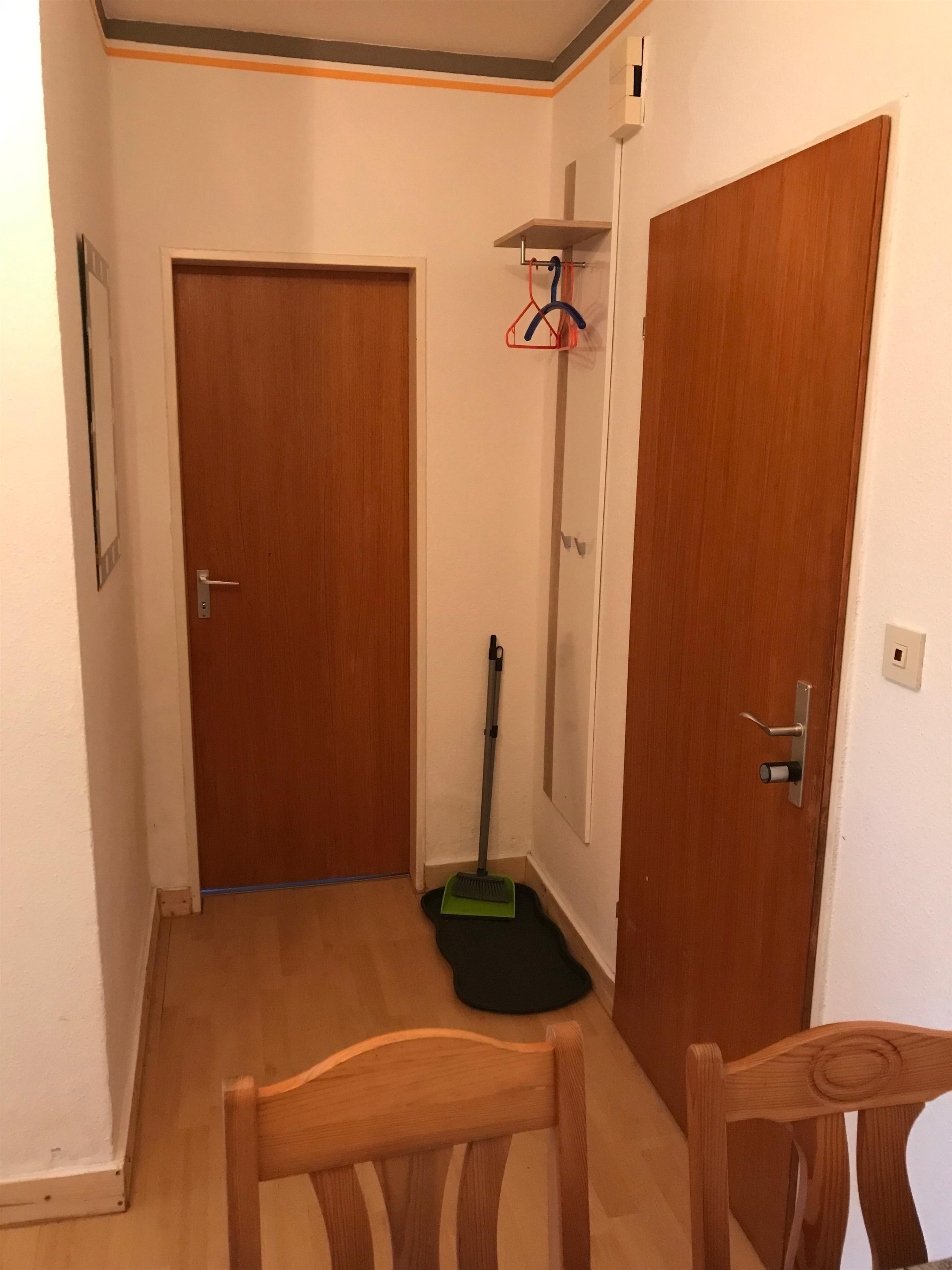 Diese 65 qm große Ferienwohnung hat 6 Räume, bestehend aus einer Wohnküche, zwei Schlafzimmern, Flur, einem Badezimmer und einer separaten Toilette. Der Wohnteil hat ein Sofa, einen Couchtisch und einen SAT-Fernseher. Der Küchenteil ist mit Wasserkocher, Kaffeemaschine, Handmixer, Herd, Backofen, Toaster, Kühlschrank, Geschirr, Besteck, Pfannen und Töpfen ausgestattet. Im Flur steht ein Eßtisch mit 4 Stühlen.