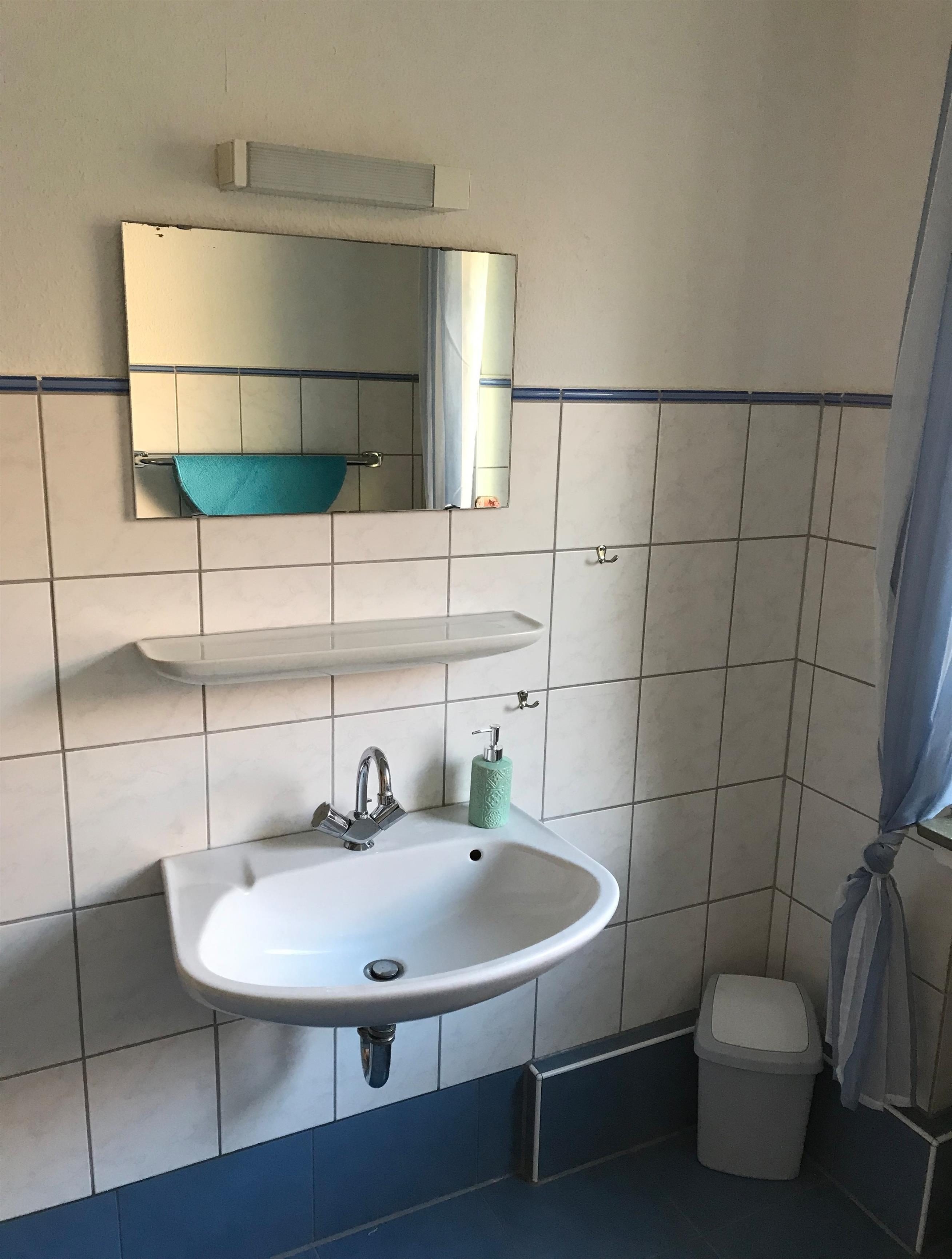 Das Badezimmer ist mit einer Dusche ausgestattet.