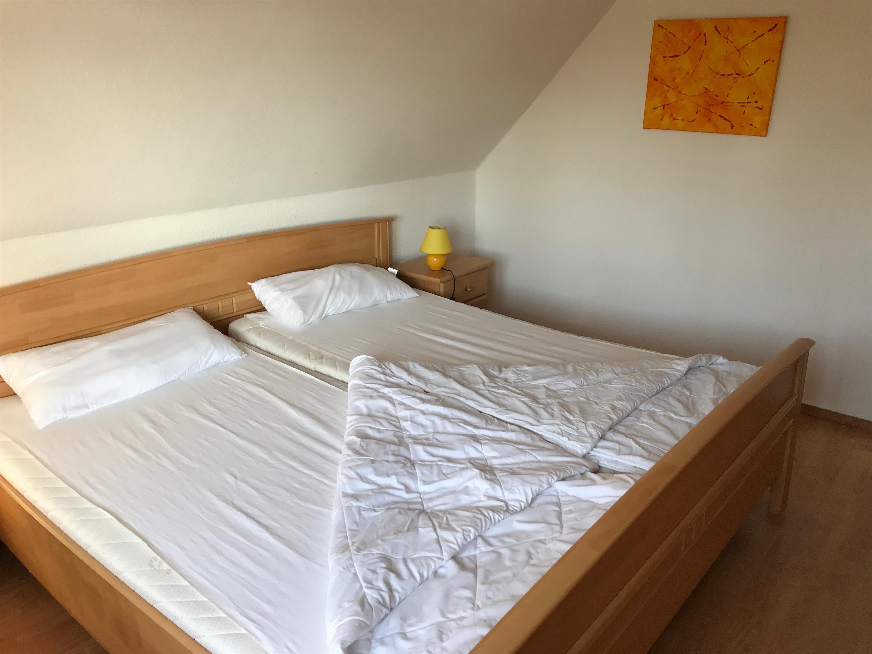 Das (Eltern)Schlafzimmer hat ein Doppelbett (2 x 90 x 200 cm).