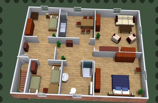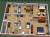 Diese 70 m2 große Ferienwohnung hat 7 Räume, bestehend aus einem Wohnzimmer, einer Küche, drei Schlafzimmern, Flur und einem Badezimmer. Das Wohnzimmer hat ein Sofa, einen Couchtisch und einen SAT-Fernseher. In der Küche steht ein Eßtisch mit 4 Stühlen und ist mit Wasserkocher, Kaffeemaschine, Handmixer, Herd, Backofen, Toaster, Kühlschrank, Geschirr, Besteck, Pfannen und Töpfen ausgestattet.