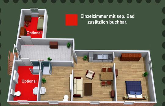 Die nachfolgende Skizze dient nur der Veranschaulichung der räumlichen Aufteilung. Sie ist keinesfalls eine maßstabsgetreue Wiedergabe der Räume und/oder Einrichtung.