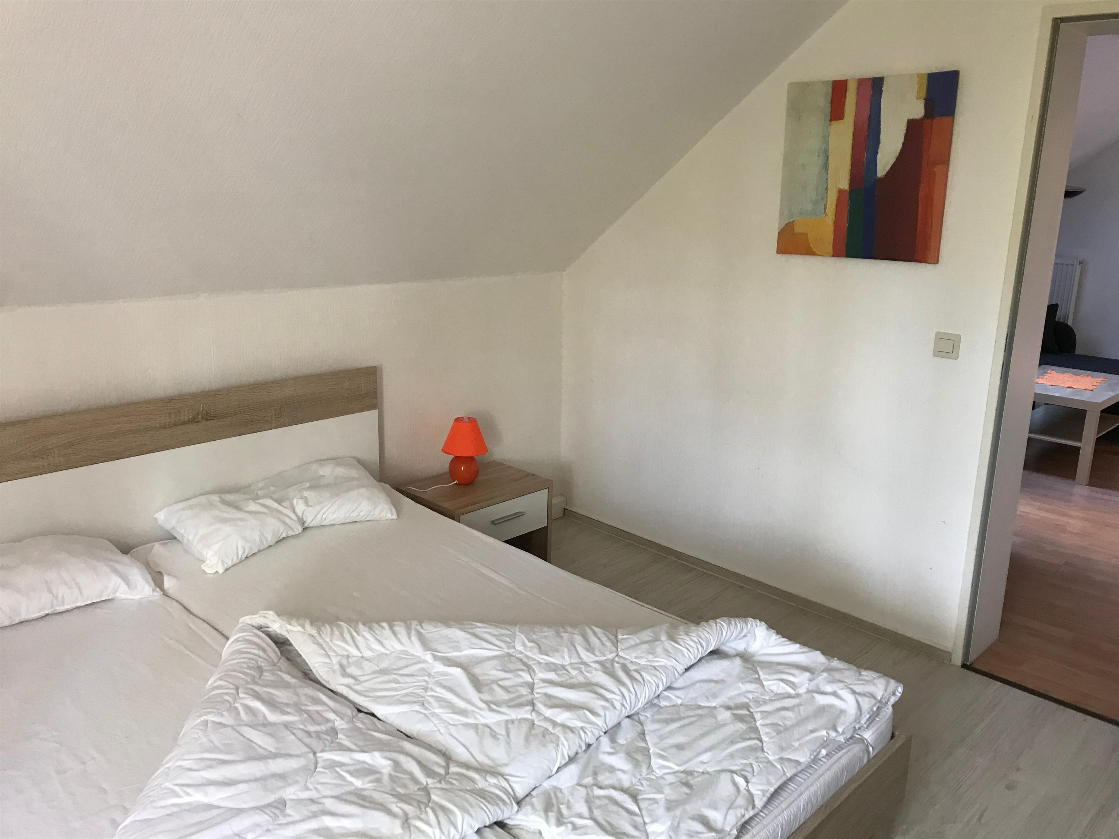Das Schlafzimmer hat ein Doppelbett (2 x 90 x 200 cm).
