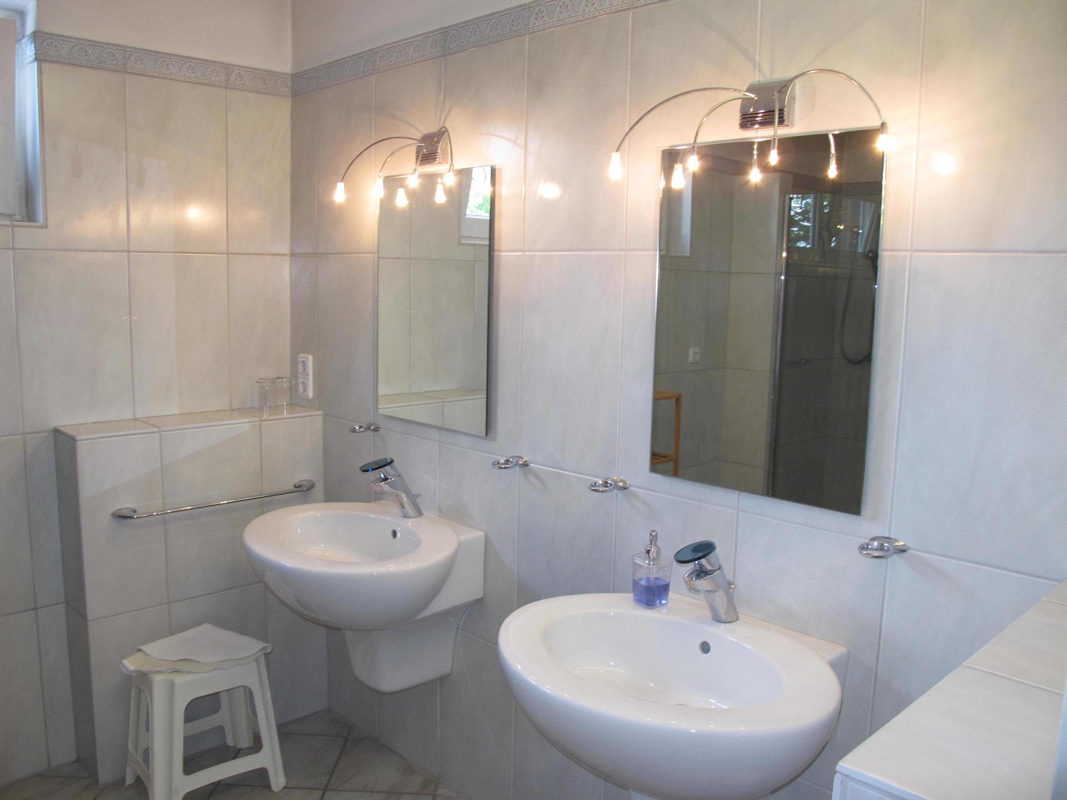 Zugang über ein internes Treppenhaus zur separaten Wohnung in der 1. Etage: Flur mit Garderobe. Ca. 40 m² großer Wohnraum bzw. lichtdurchfluteter Wintergarten mit großen, hohen Fensterfronten, Ledersitzgruppe und Balkonausgang . Weiterer, kleiner Wohnraum mit Leder-Sitzgruppe, Eßplatz und kleiner Küche (2 Platten, Mikrowelle, Kühlschrank). Große Gemeinschaftsküche mit Einbauherd (4 Platten, Backofen), Mikrowelle, Geschirrspüler, Toaster, Kaffeemaschine, Wasserkocher, Kühlschrank und großem Eßplatz. Großes Doppelzimmer. Großes Zweibettzimmer. Weiteres Doppelzimmer. Schlafzimmer mit Etagenbett. Große Dusche/WC mit Doppelwaschbecken. Weitere Dusche/WC. NICHTRAUCHEROBJEKT !