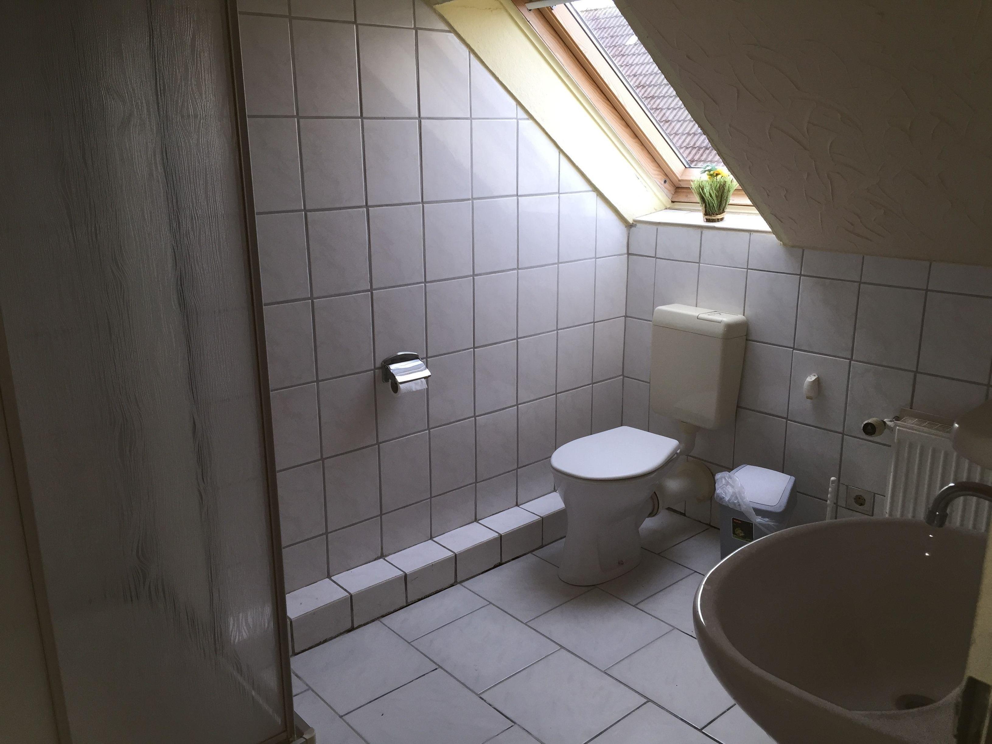 Das Badezimmer ist mit einer Dusche ausgestattet.