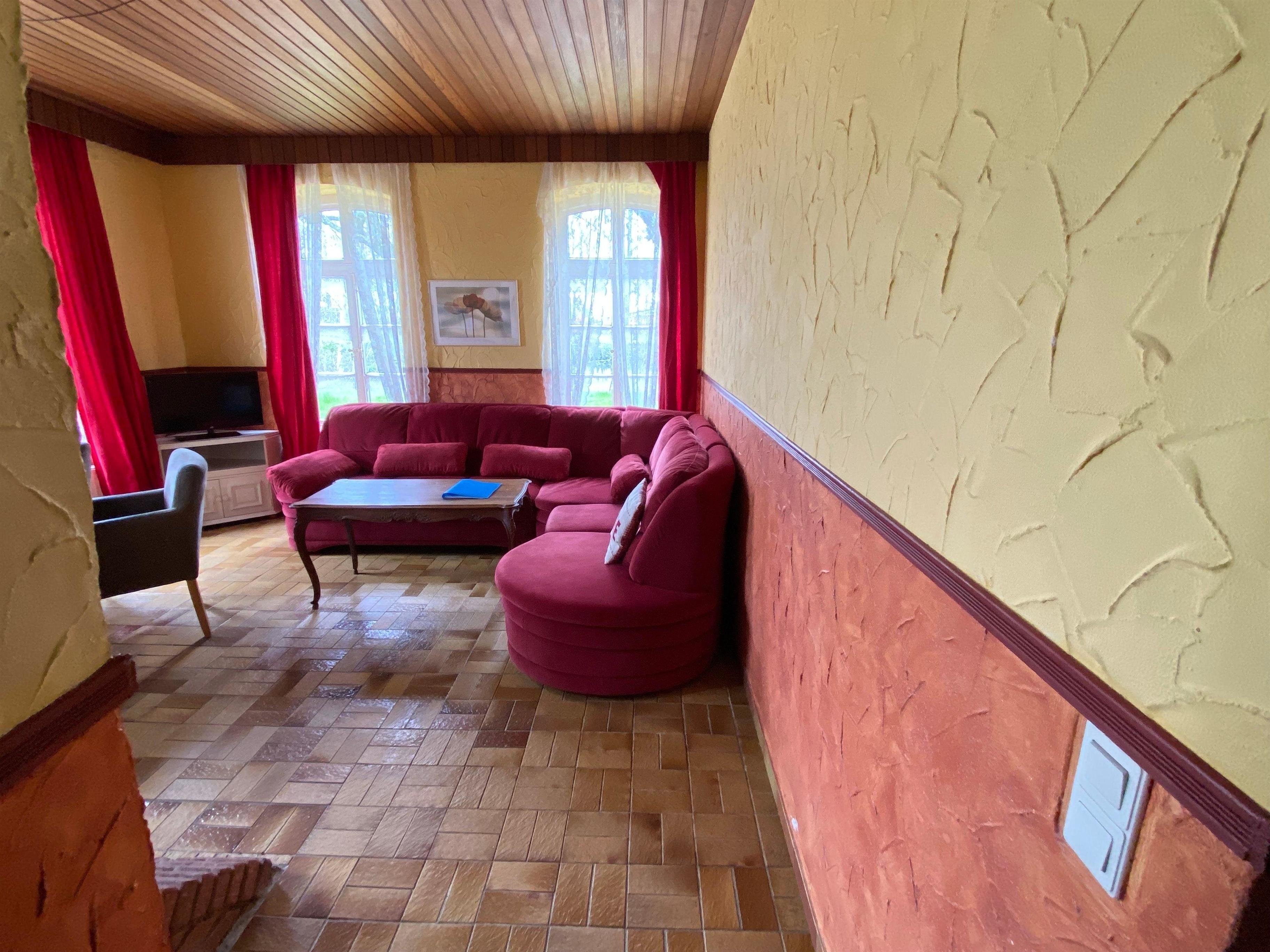Diese 60 qm große Ferienwohnung hat 5 Räume, bestehend aus einem Wohnzimmer, einer Küche, zwei Schlafzimmern, Flur und einem Badezimmer.