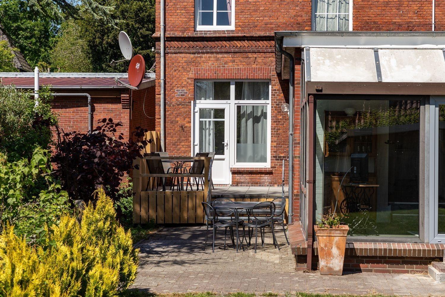 Die Ferienwohnung bietet einen einladenden Außenbereich, der ideal für entspannte Stunden im Freien ist. Eine großzügige Terrasse mit Gartenmöbeln lädt zum Verweilen ein, während der gepflegte Garten Erholung und Ruhe verspricht. Obstbäume und blühende Pflanzen schaffen eine atmosphärische Umgebung, die zum Entdecken und Genießen einlädt. Perfekt für unvergessliche Urlaubsmomente in der Natur.