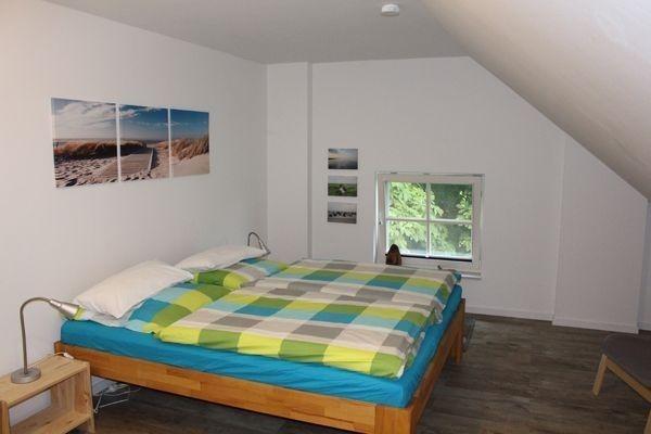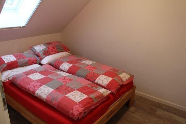 Das kleine Schlafzimmer ist ausgestattet mit einem Doppelbett 140 x 200 cm, 1 Kleiderschrank, 2 Nachttischen und einem CD-Player. Betten sind bei Anreise für Sie bezogen.