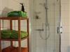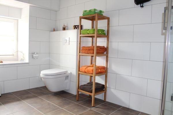 Im großen Tageslicht Badezimmer befinden sich Toilette, Dusche, 1 Waschmaschine und Föhn.
