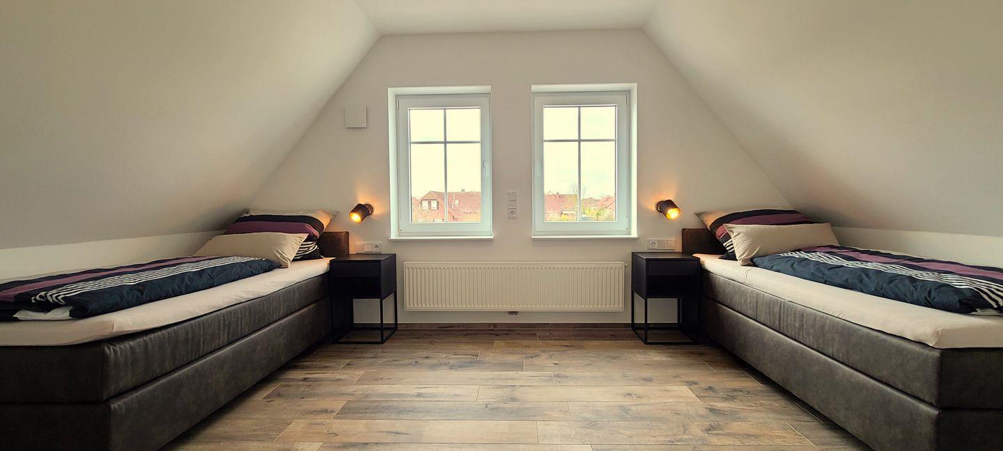 Herzlich willkommen in Ihrem Ferienhaus Urlaubsglück. Dieses moderne und komfortable Ferienhaus wurde im Jahr 2022 neu erbaut und bietet auf rund 110 qm ausreichend Platz für bis zu sechs Personen. Drei gemütliche Schlafzimmer, jeweils ausgestattet mit hochwertigen Boxspringbetten, sorgen für erholsame Nächte. Bettwäsche und Handtücher können auf Wunsch gegen Aufpreis hinzugebucht werden.