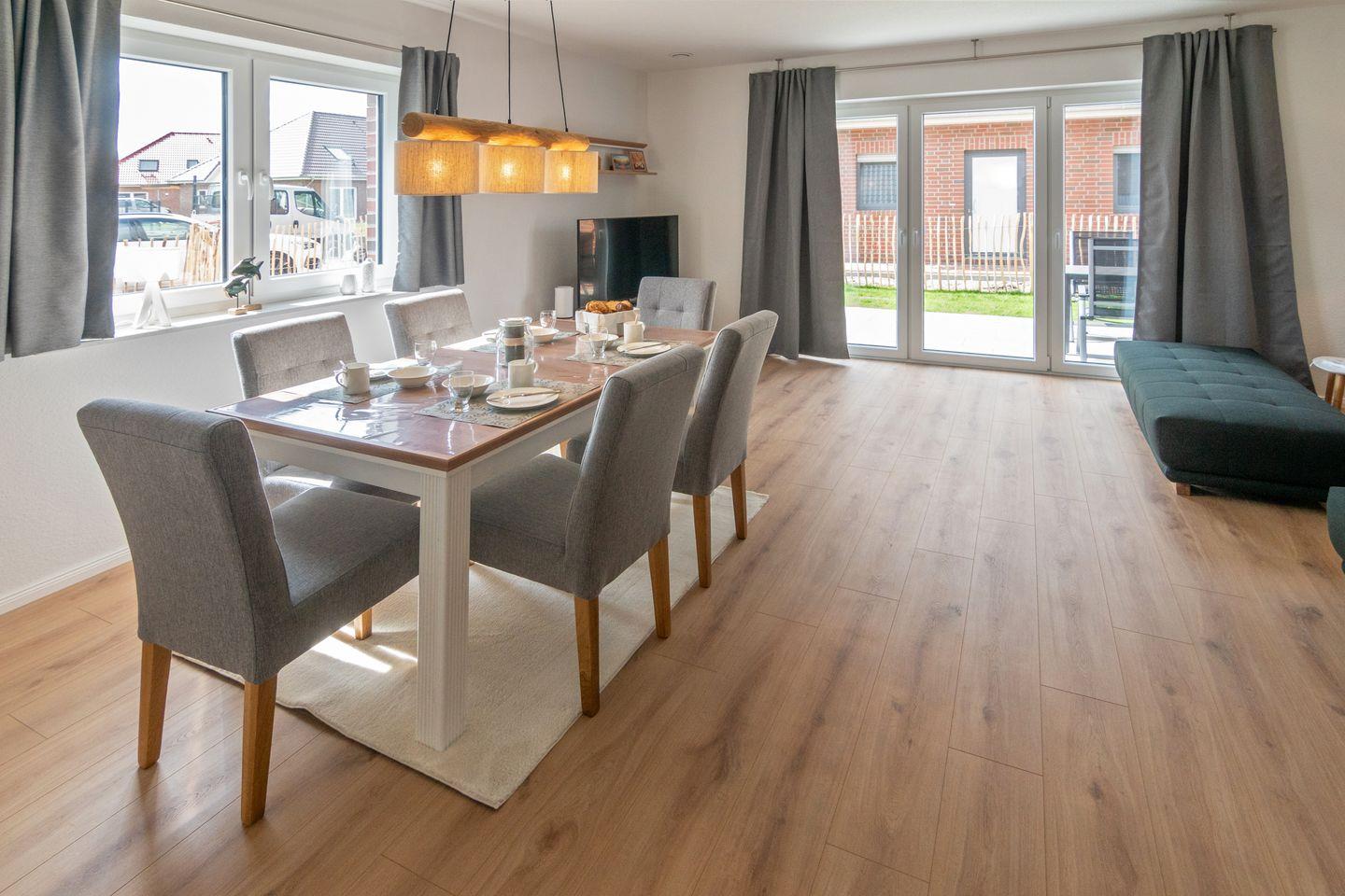 Willkommen im stilvollen und einladenden Reihenhaus Knus in Dornum, einer perfekten Unterkunft für Familien oder Paare, die sich nach einer erholsamen Auszeit an der Nordsee sehnen. Das moderne Haus, erbaut im Jahr 2023, bietet auf großzügigen 110 m² Wohnfläche Platz für bis zu vier Personen und heißt auch Ihre vierbeinigen Begleiter herzlich willkommen.