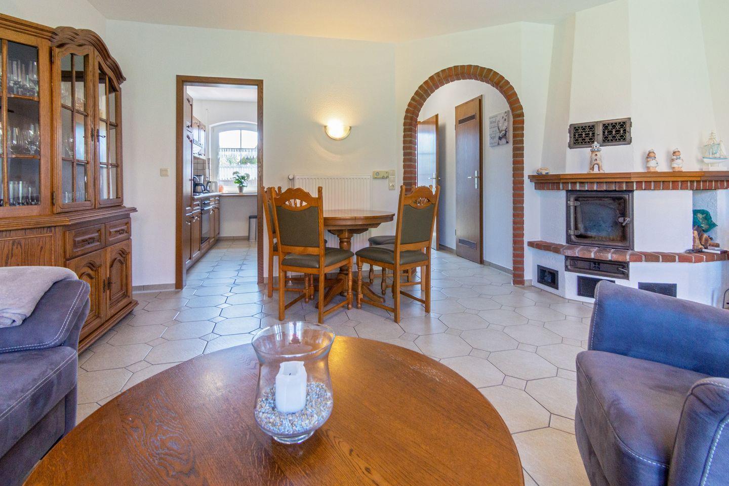 Willkommen in der Ferienunterkunft Biene – Ihrem charmanten Rückzugsort in Dornum, ideal für Familien und Paare, die Erholung an der Nordsee suchen. Auf 85?m² erwarten Sie zwei Schlafzimmer, zwei Badezimmer sowie ein helles Wohnzimmer mit gemütlicher Sofaecke, großem TV und wärmendem Kaminofen – perfekt für entspannte Abende. Die geschlossene, voll ausgestattete Küche lädt zum gemeinsamen Kochen ein. Waschmaschine, Bügeleisen und -brett sind ebenfalls vorhanden.