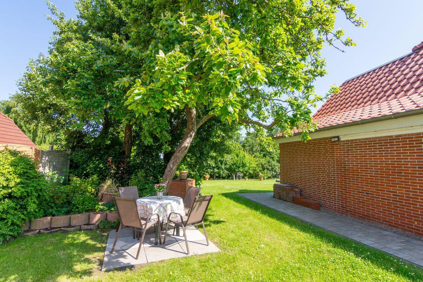 Der gepflegte Gartenbereich mit Terrasse, Sonnenliegen und Gartenmöbeln lädt zum Verweilen ein. Die ruhige Lage am Ortsrand bietet Erholung pur – perfekt für ein Frühstück im Freien oder entspannte Sonnenstunden.