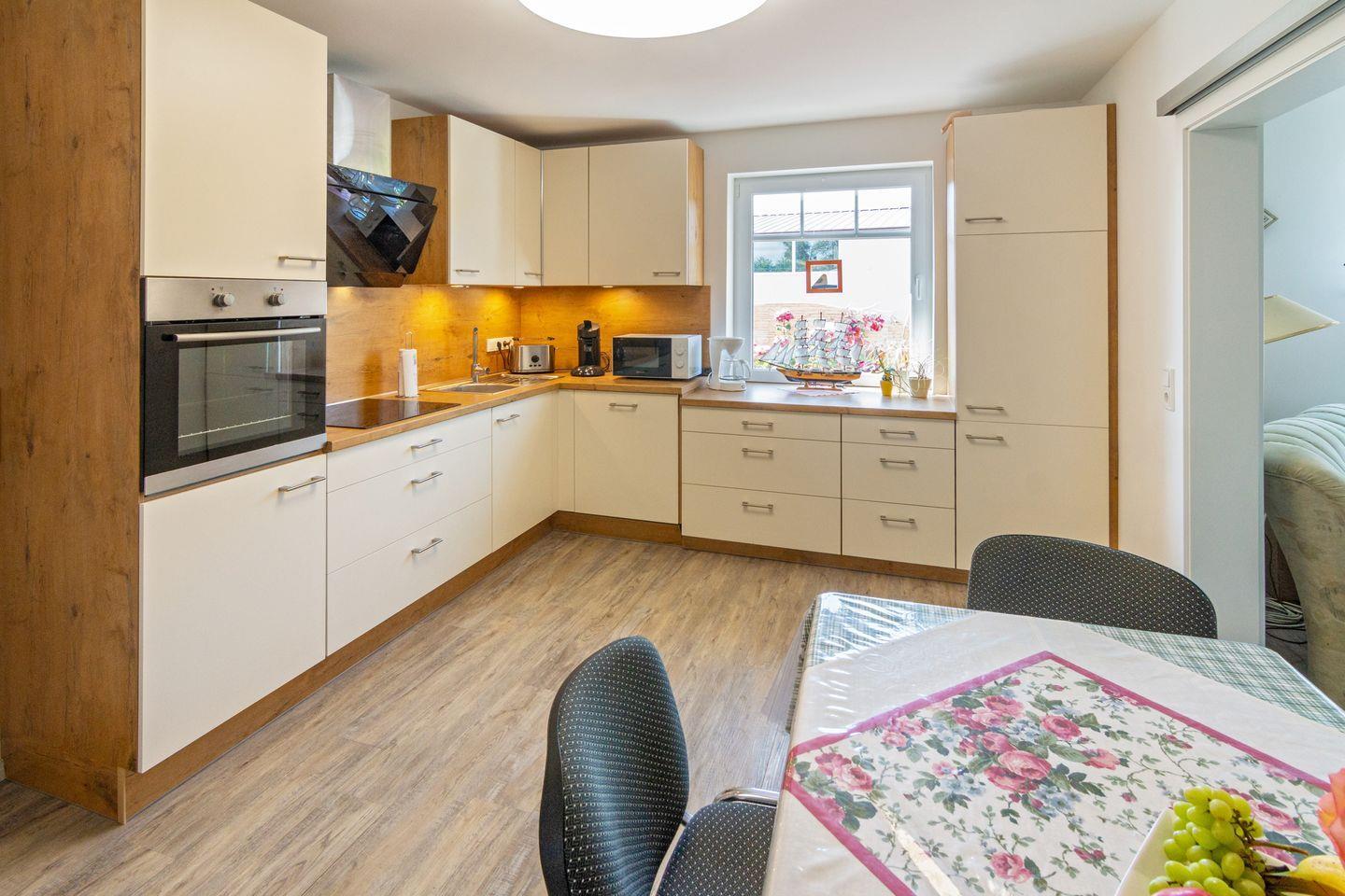 Zwei gemütliche Schlafzimmer mit elektrisch höhenverstellbaren Betten, ein großzügiger Wohn- und Essbereich sowie eine voll ausgestattete Küche (Cerankochfeld, Kühlschrank, Gefrierfach, Mikrowelle, Spülmaschine, Kaffeemaschine, Espressomaschine) lassen keine Wünsche offen. WLAN ist kostenfrei verfügbar. Eine Waschmaschine steht ebenfalls bereit.