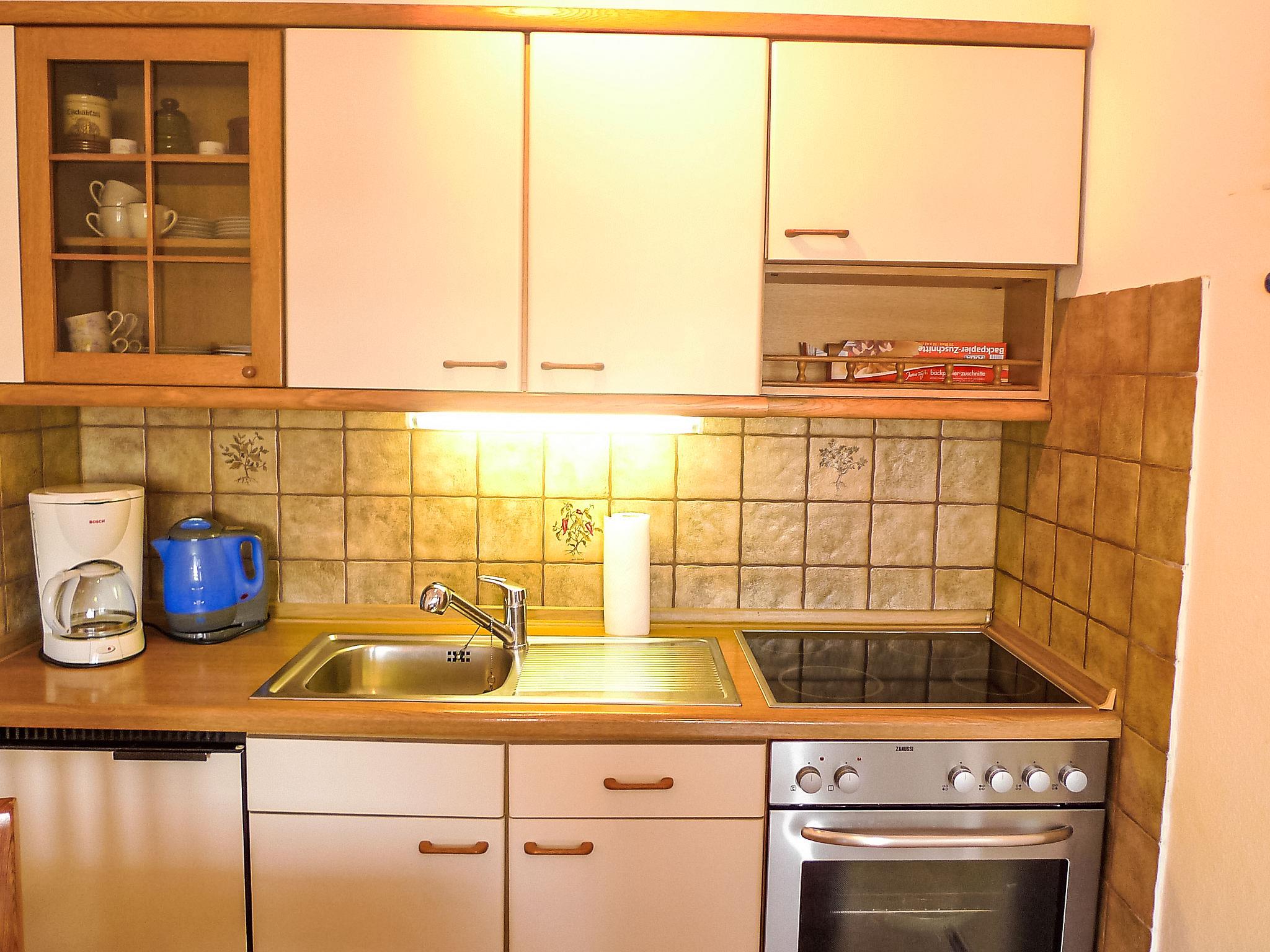 2-room apartment 35 m2 on 2nd floor. Tasteful and cosy furnishings: living/dining room 10 m2 with 1 sofabed and satellite TV (flat screen), radio. Exit to the balcony. 1 room 6 m2 with 2 beds (90 cm, length 200 cm). Kitchenette (oven, 4 ceramic glass hob hotplates, electric coffee machine). Shower/WC. Large balcony 10 m2. Balcony furniture. Facilities: Internet (WiFi, free). Please note: non-smokers only. Smoke alarm.