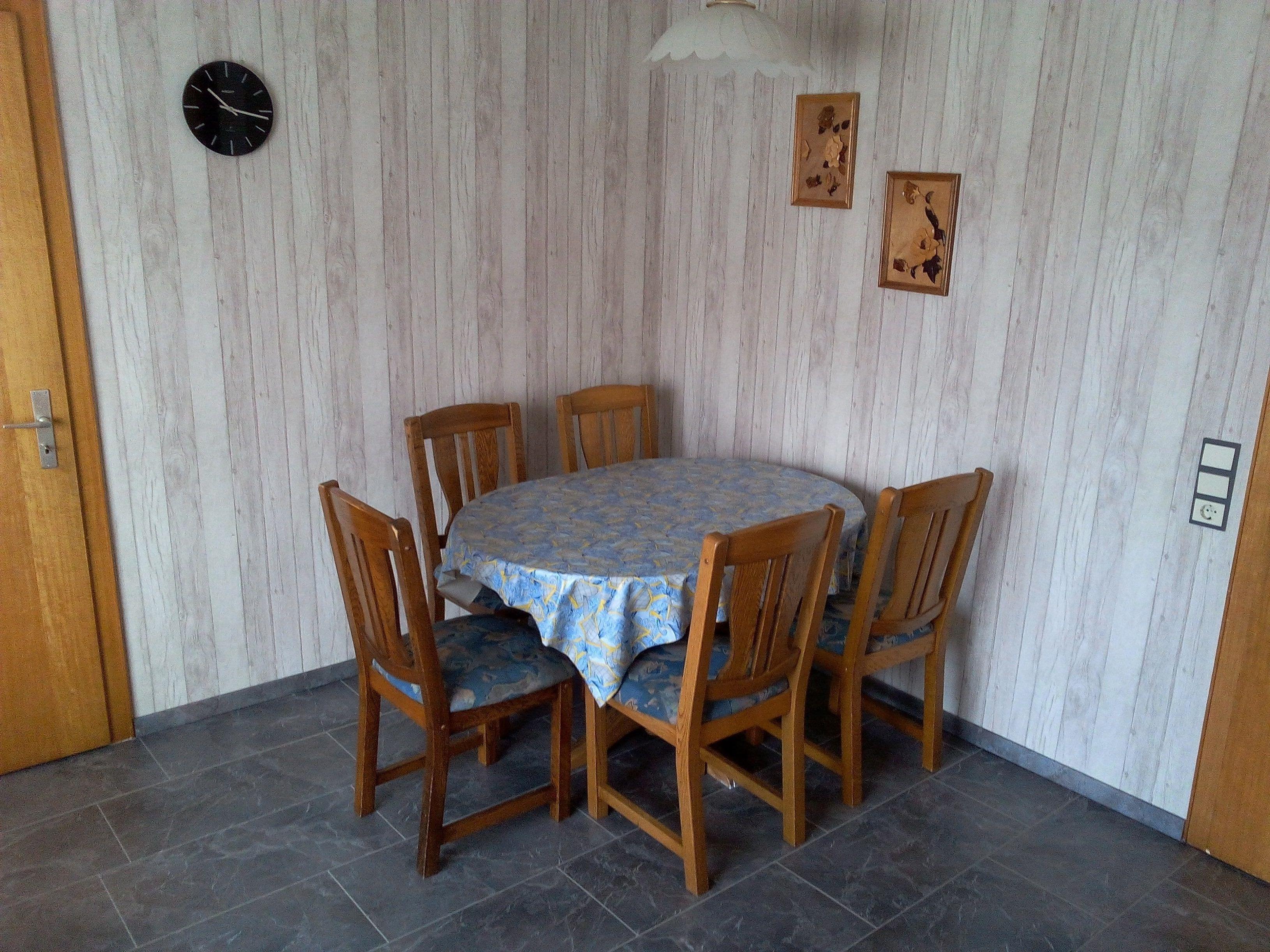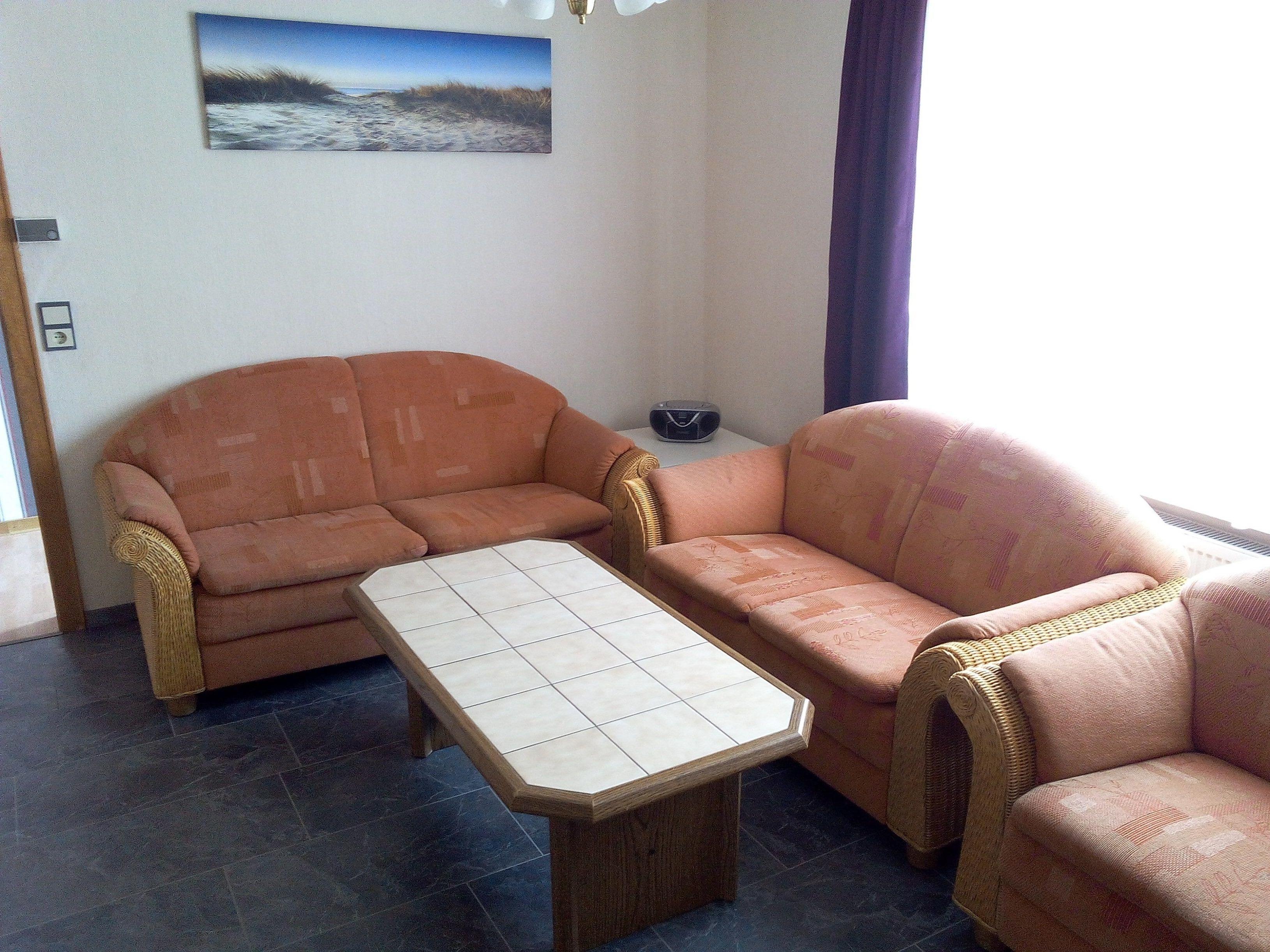 Unsere Wohnung "Juist" ist komplett für 4 Personen eingerichtet (zusätzlich steht ein Babybett und ein Hochstuhl zur Verfügung). Es ist eine komplette Küche mit Kühlschrank, Backofen, Mikrowelle, Kaffeemaschine, Toaster, Eierkocher und weiterem Inventar vorhanden. Auch ein Wohn- / Esszimmer mit Fernseher sowie Radio/CD steht Ihnen zur Verfügung.