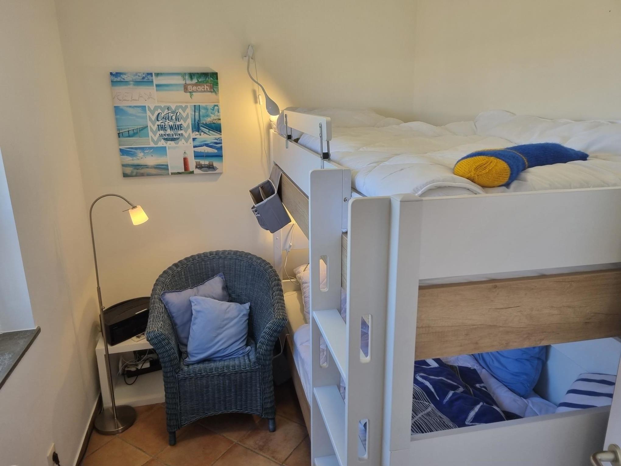 Das Ferienhaus Schirmqualle ist mit einer vollständigen Hausausstattung ausgerüstet. Neben einer vollwertigen Küche, Bad mit Dusche, einem Schlafzimmer mit Etagenbett und ein Weiteres mit einem Doppelbett, steht auch eine Waschmaschine zur Verfügung.