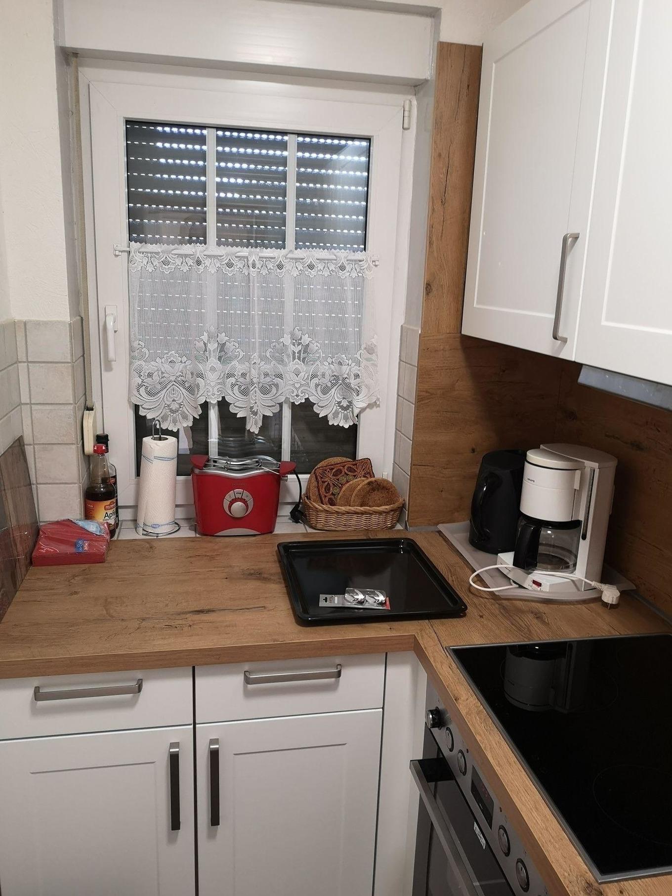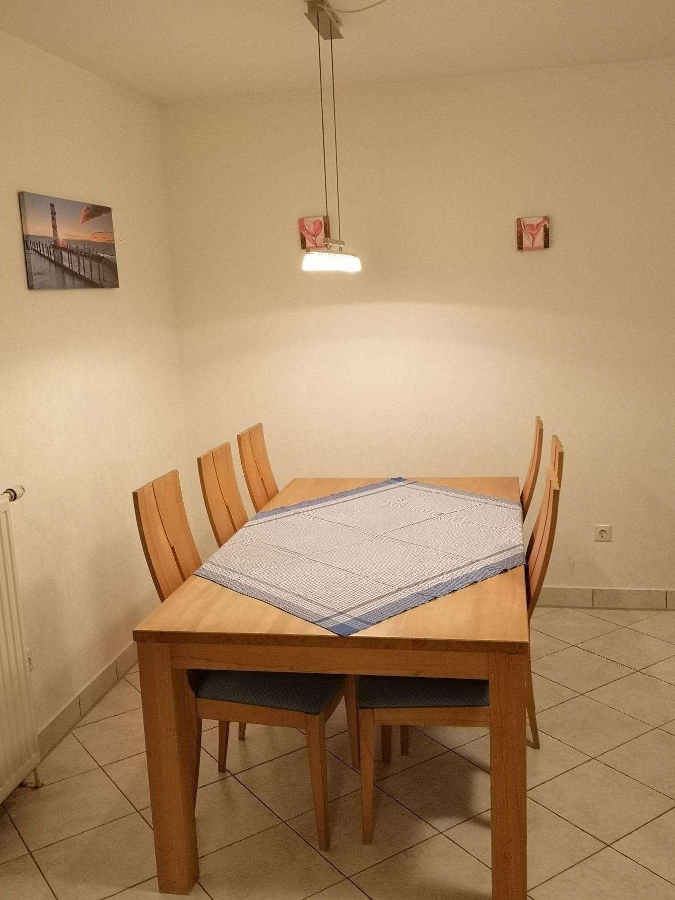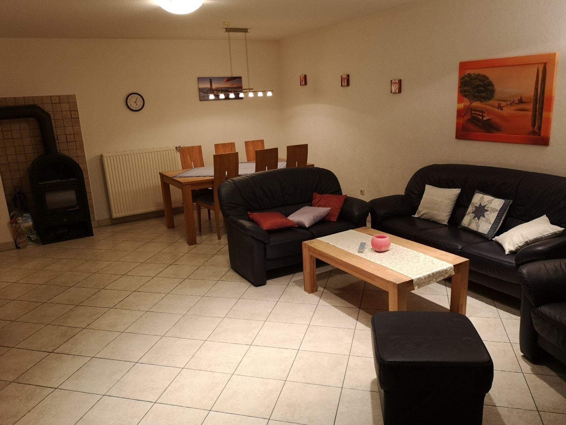 Im EG erwartet Sie ein Wohnzimmer mit großem Wintergarten und Essecke, Sat-TV, DVD- und CD-Player sowie zahlreiche Bücher und DVD´s. Die Küche ist mit Backofen und Induktionsfeld, Spülmaschine, Mikrowelle, Kühlschrank mit Gefrierfach, Kaffeemaschine und weiteren Küchenutensilien ausgestattet. Ferner steht Ihnen ein Badezimmer mit Badewanne sowie Duschmöglichkeit und eine Waschmaschine zur Verfügung.