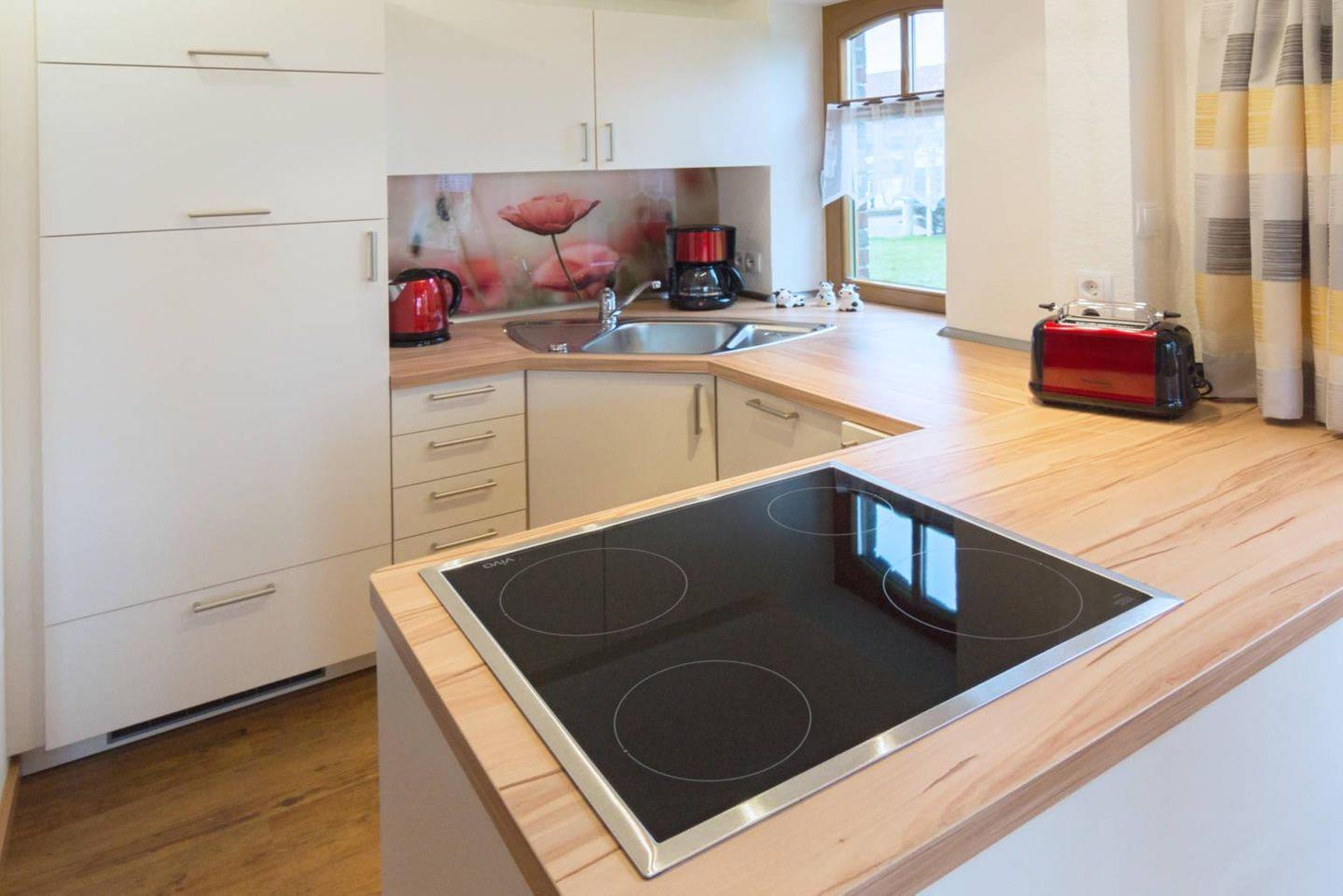 Die Doppelhaushälfte vereint modernen Wohnkomfort mit gemütlichem Charme. Im Erdgeschoss erwartet Sie ein offener Wohn- und Essbereich mit einer voll ausgestatteten Küche, die keine Wünsche offenlässt. Das angrenzende Duschbad mit WC bietet zusätzlichen Komfort. Im Obergeschoss befinden sich zwei liebevoll gestaltete Schlafzimmer: eines mit einem komfortablen Boxspringbett für erholsame Nächte, das andere mit zwei gemütlichen Einzelbetten – ideal für Kinder oder zusätzliche Gäste. Für Familien mit kleinen Kindern stehen ein Kindergitterbett und ein Hochstuhl bereit. Das zweite Badezimmer lädt mit einer Badewanne und modernen Details zum Entspannen ein. Für Ihren Aufenthalt steht Ihnen außerdem eine Waschmaschine zur Verfügung.
