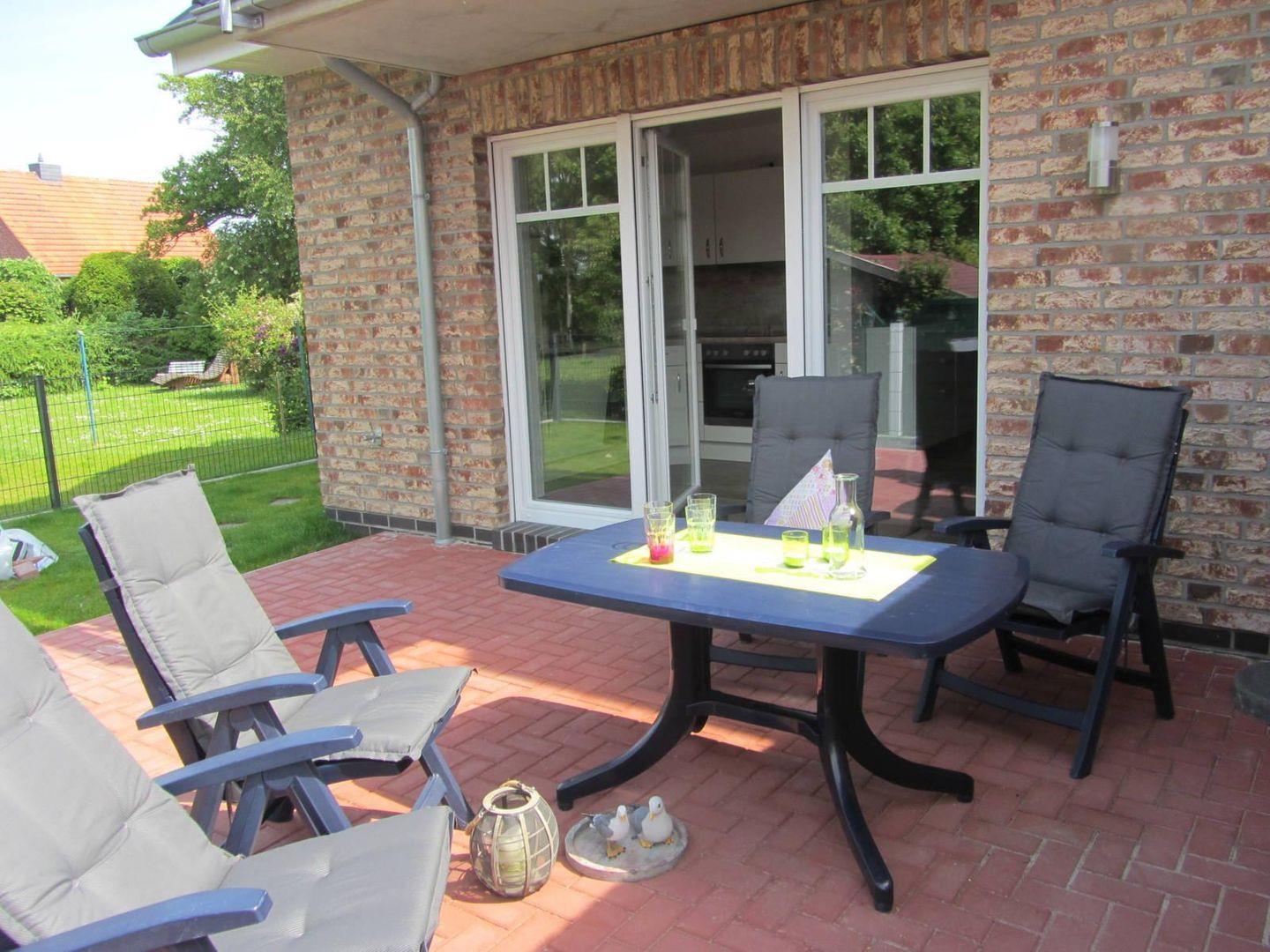 Das eingezäunte Grundstück ist ideal für Familien. Terrasse mit Markise, Garten mit Liegewiese, Sonnenschirm und Elektrogrill laden zum Entspannen ein.
