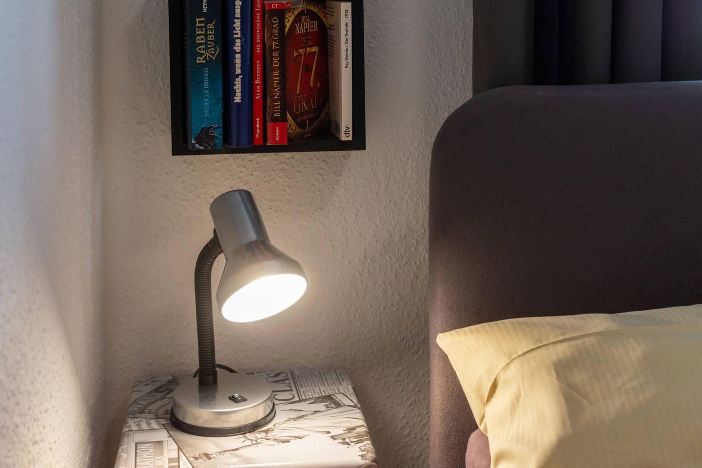 Die Wohnung verfügt über zwei Zimmer: ein separates Schlafzimmer mit Doppelbett sowie ein Wohnbereich mit Sofa, Esstisch, Kommode und TV (Sat-Anschluss), CD-Player und Radio. WLAN steht über einen GigaCube kostenfrei zur Verfügung.